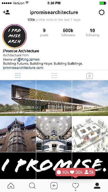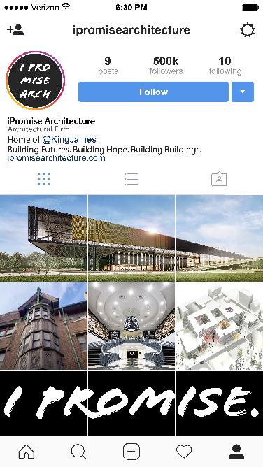 The objective of this social media rebranding is to be able share a well-known person, specifically an athlete. LeBron James’ life was chosen to share with less focus on basketball and primary focus outside of sports, visually capturing the positive impact that is architecture has had for communities.