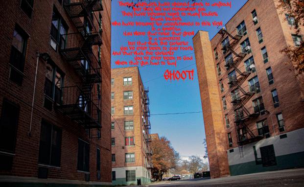 I titled this work 'Poetic Arch', Arch being short for architecture. I am not only a designer but I am also a poet and one of my aspirations in life is to be an architectural designer, therefore, I wanted to combine the two to show how much they resonate with each other. I used my poetry and design abilities to be able to tell a story within my life and architecture. I redesigned the projects of where I grew up, Staten Island, New York and wrote the poem that was applied on the front of the building creating a sense of unity and connection.