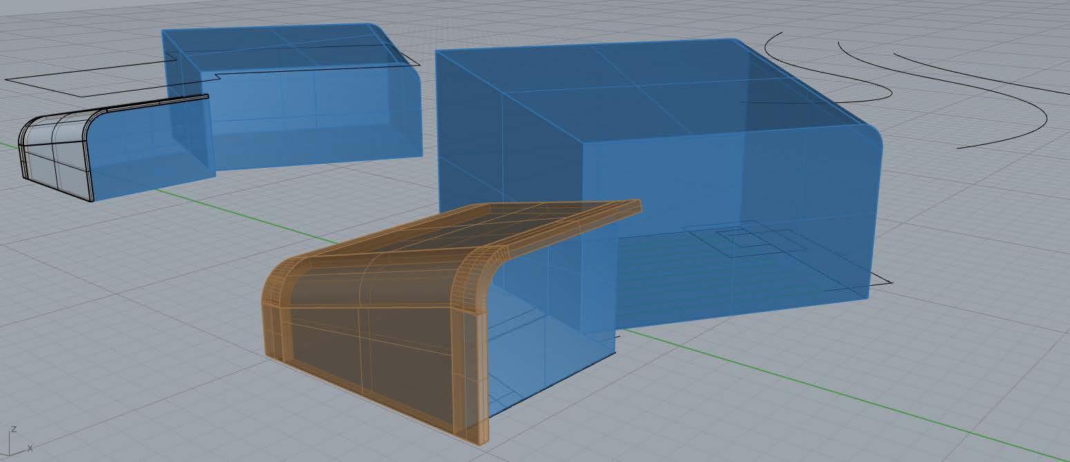 Since my building emphasizes mass timber so heavily, I felt it was very important to represent it using wood and laminating layers together mimicking the construction of the glulam members that would be in the real building. I also felt it was important to etch the subtle surface details that would be the steel plates that hold the joints together. This model, although being a facade model, was really a personal study and exploration of mass timber construction and prove its functionality. There is also of course the under lighting which I represented with a gold 3D printed sheet.
