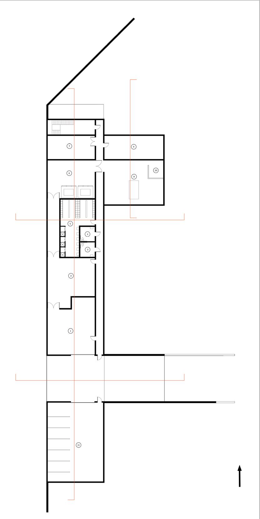 8 - Storage Room 9 - Furnace Hall 10 - Control Room 11 - Employee Parking