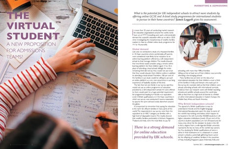 n more than 35 years of conducting market research for education organisations around the world, rarely have we at MTM Consulting seen such a demonstrable demand for a specific education offer as we did in 2020 when investigating the receptiveness of wealthy families resident in Asia to a British online study programme for 14- to 18-year-olds.