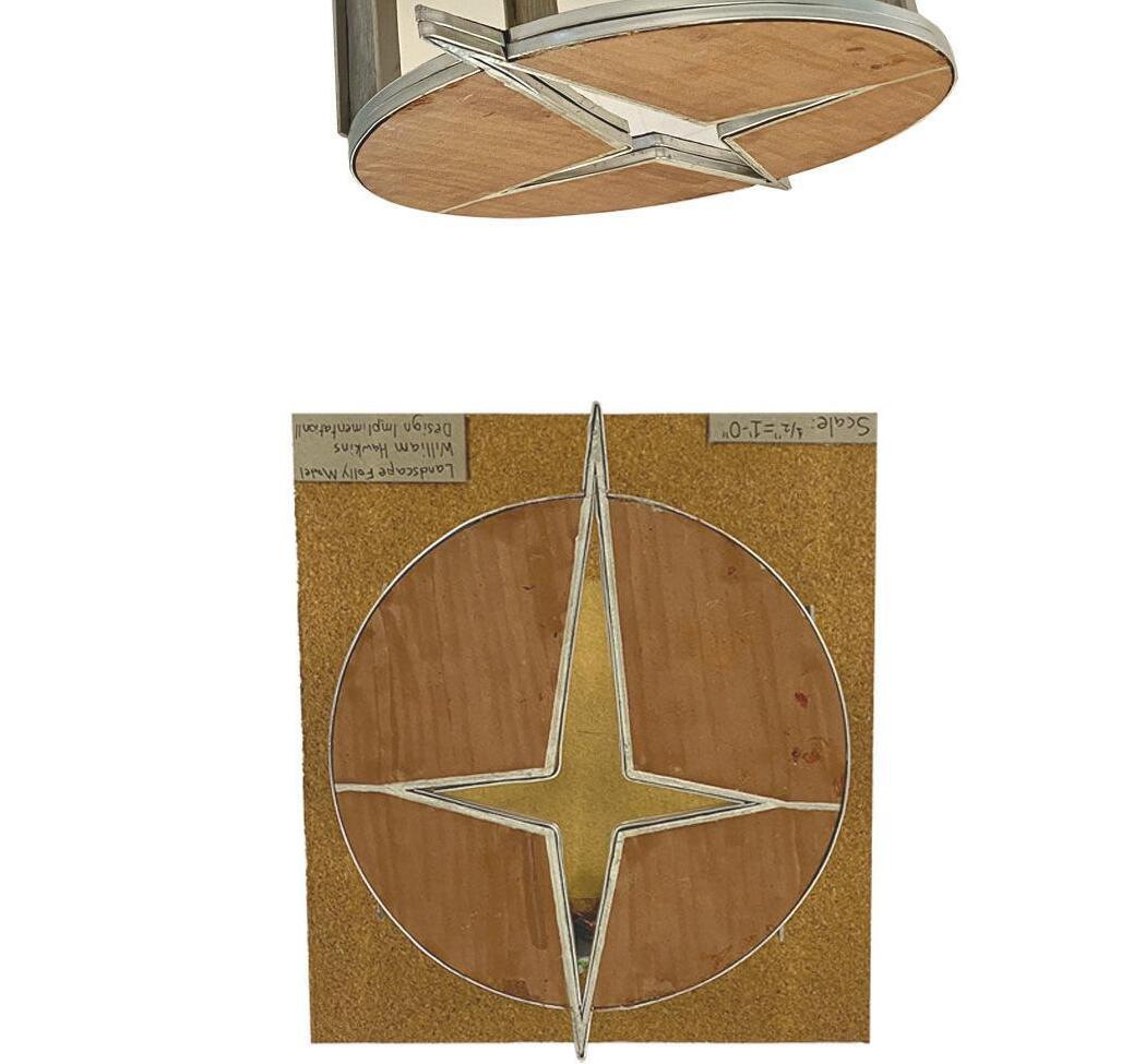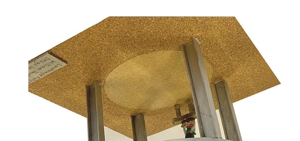 A detailed visualization assessing material selection, scale, and structural integrity. The folly model incorporates wood, cardboard, sandpaper, and metal wire to accurately represent the appearance and construction of the real structure.