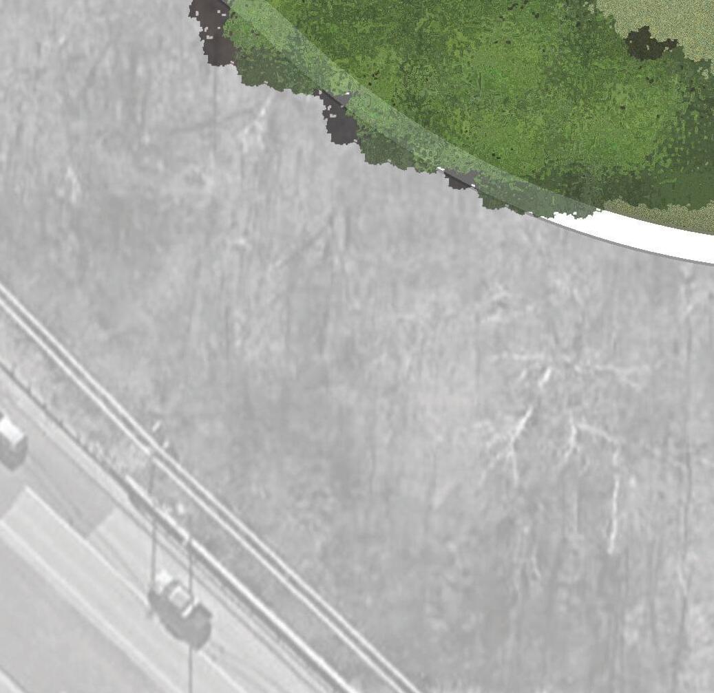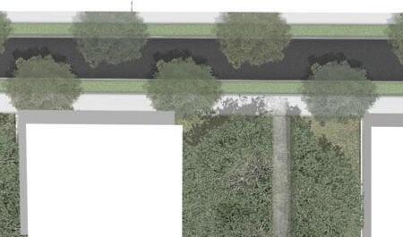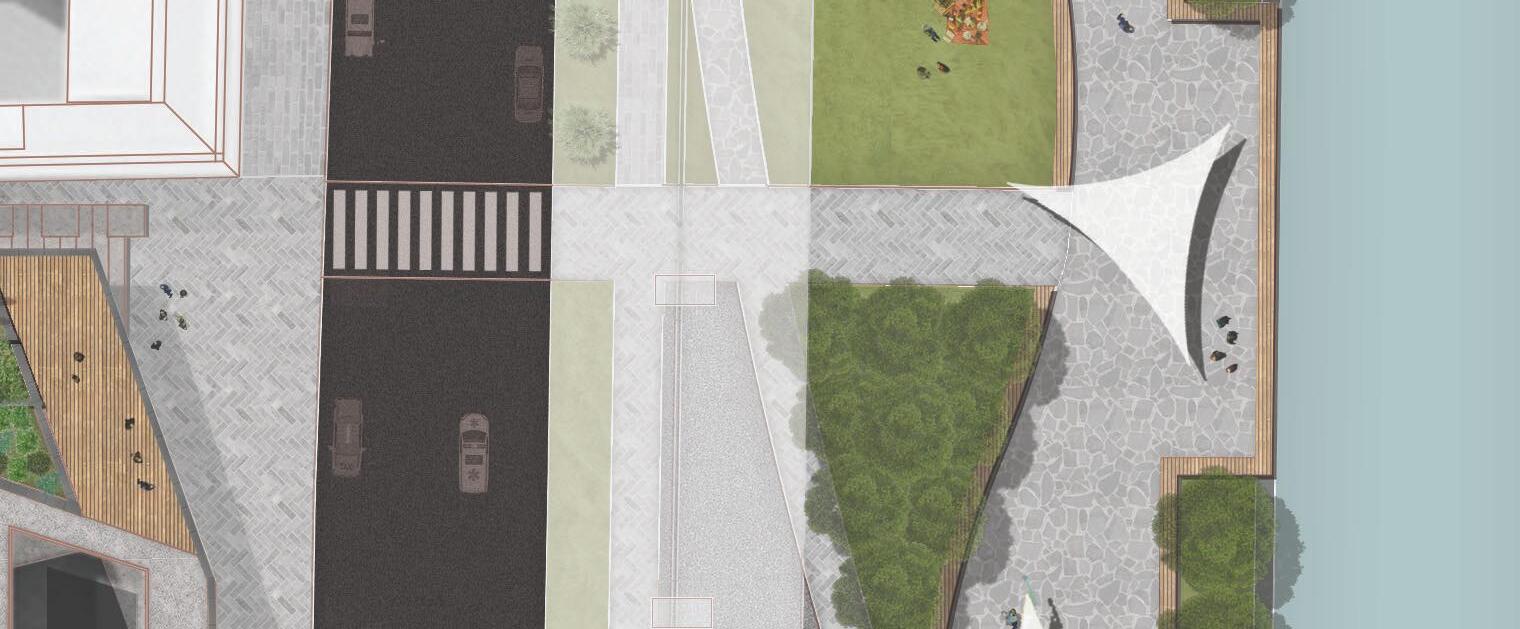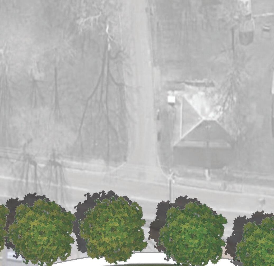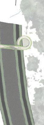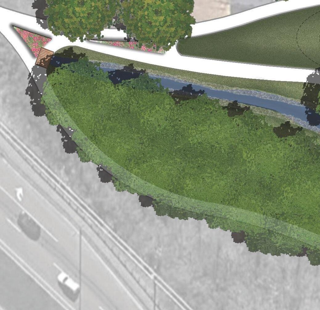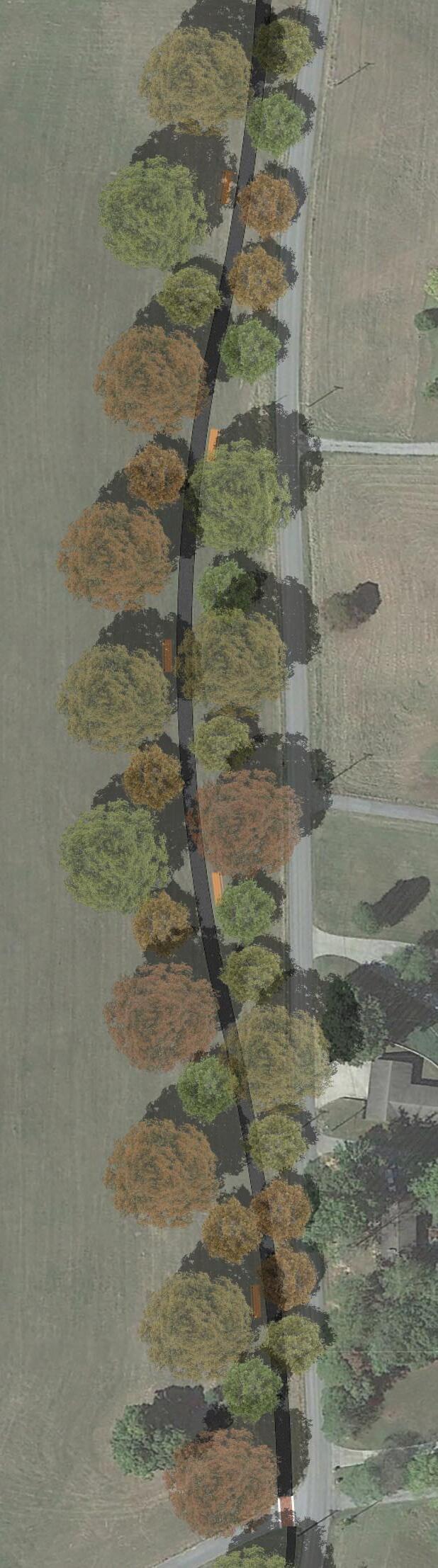 BOTTOM LEFT IMAGE: detailed view of the greenway, highlighting the scenic off-road segment, showcasing the planned route for an enhanced natural experience TOP RIGHT IMAGE: parklet concept