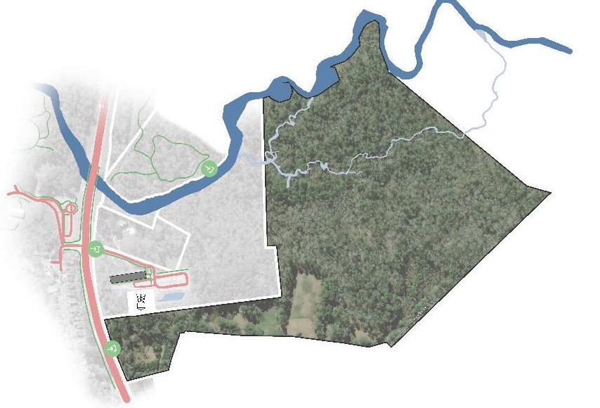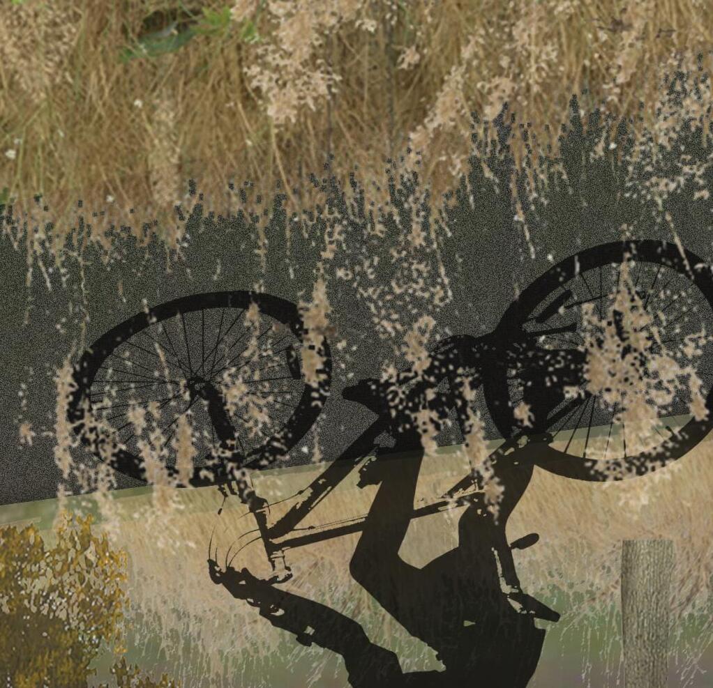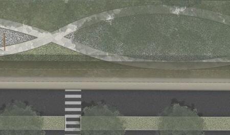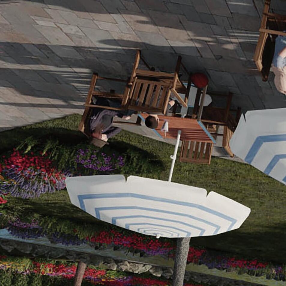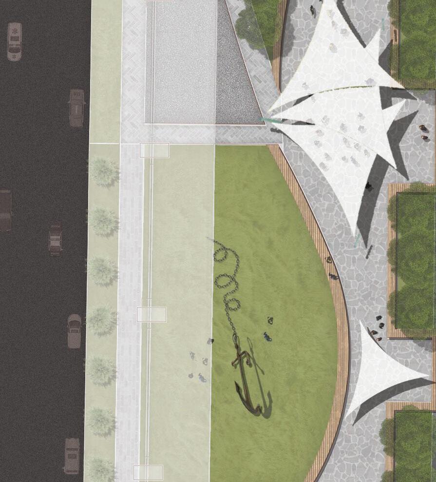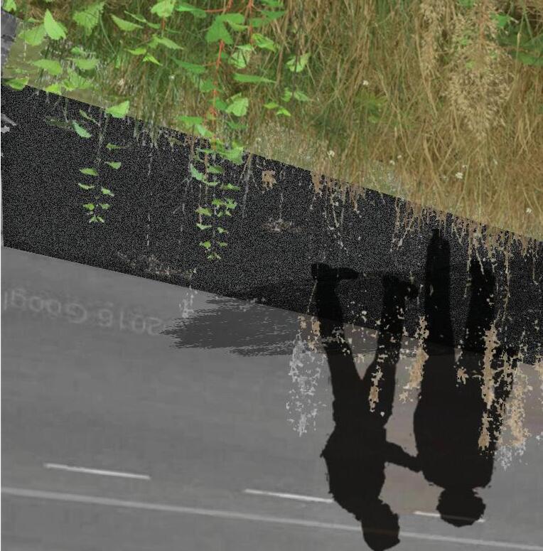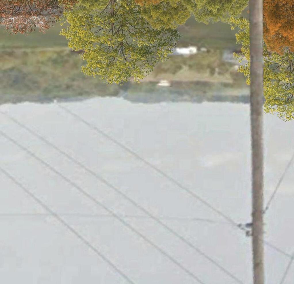 BOTTOM LEFT IMAGE: detailed view of the greenway, highlighting the scenic off-road segment, showcasing the planned route for an enhanced natural experience TOP RIGHT IMAGE: parklet concept