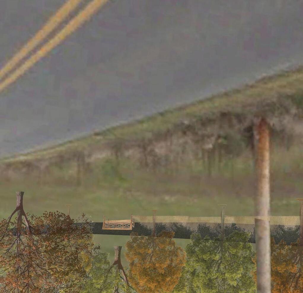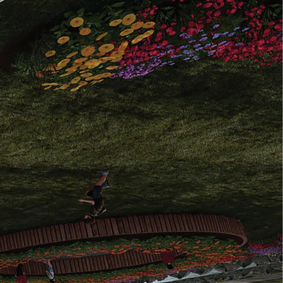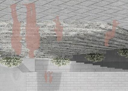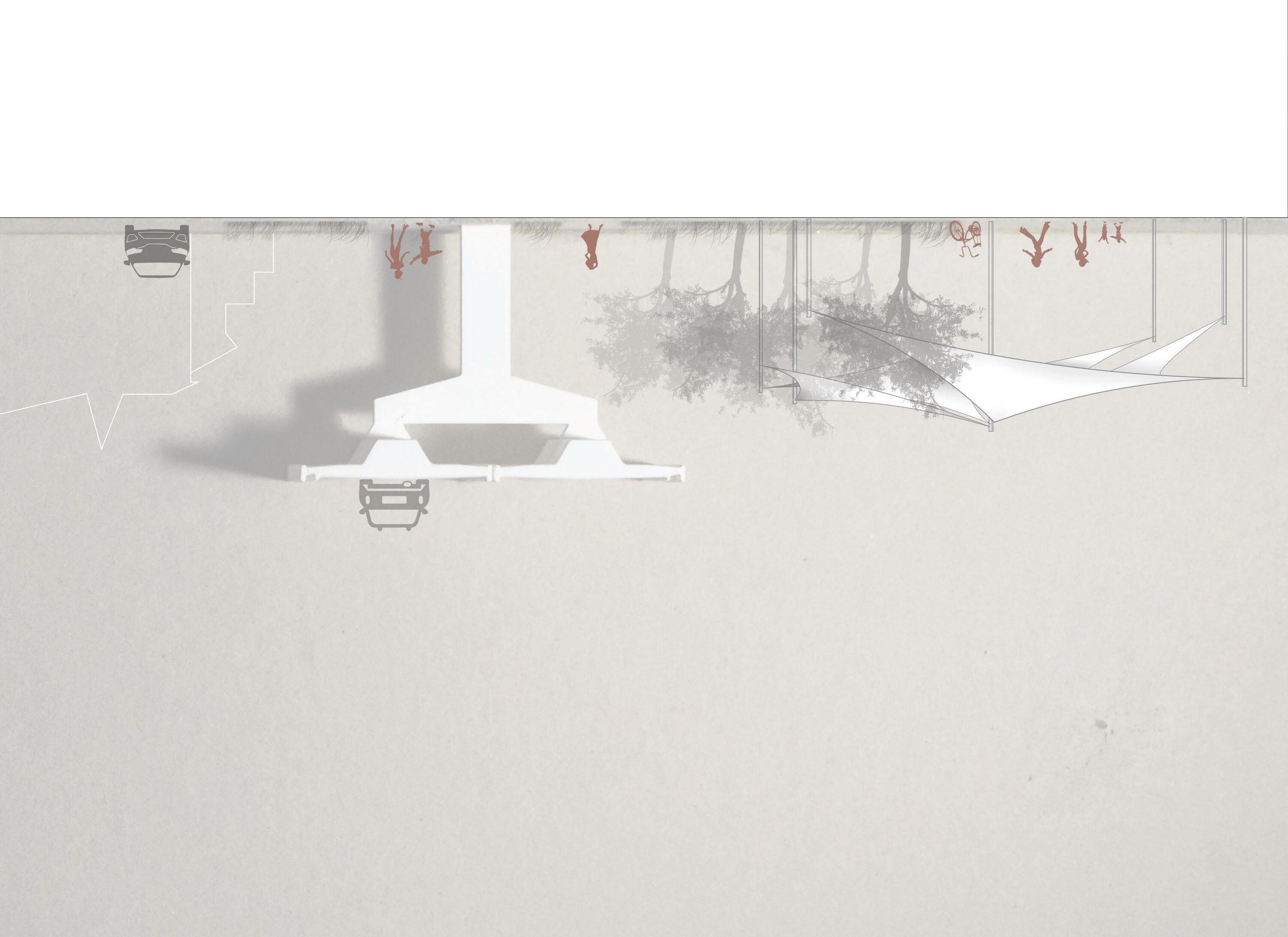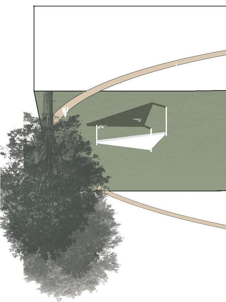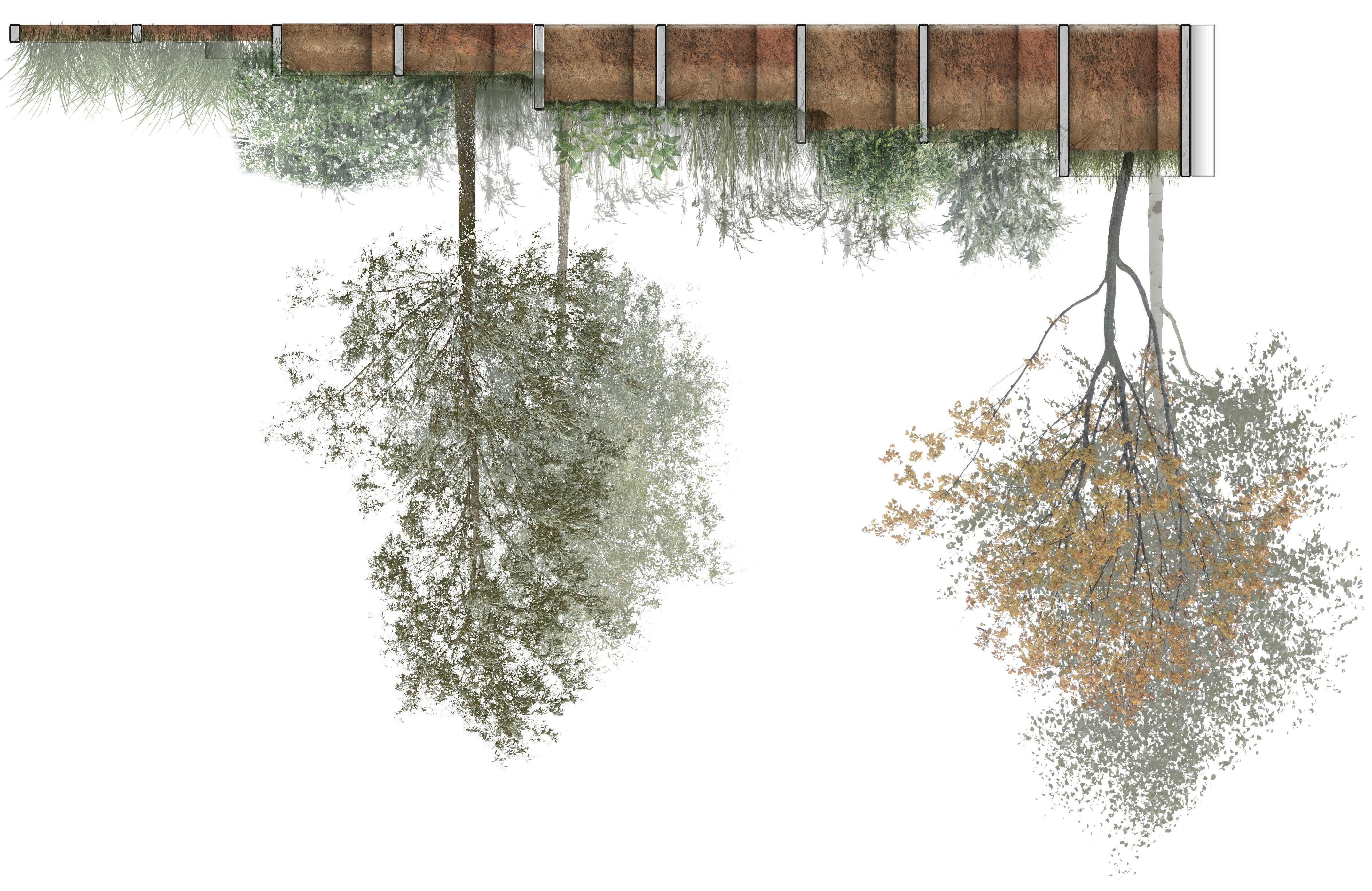 BOTTOM IMAGE: the section of the entrance to the Observable Forest conveys a sense of monumental scale through its structural design and expansive length of the entryway