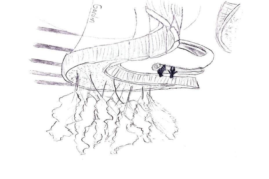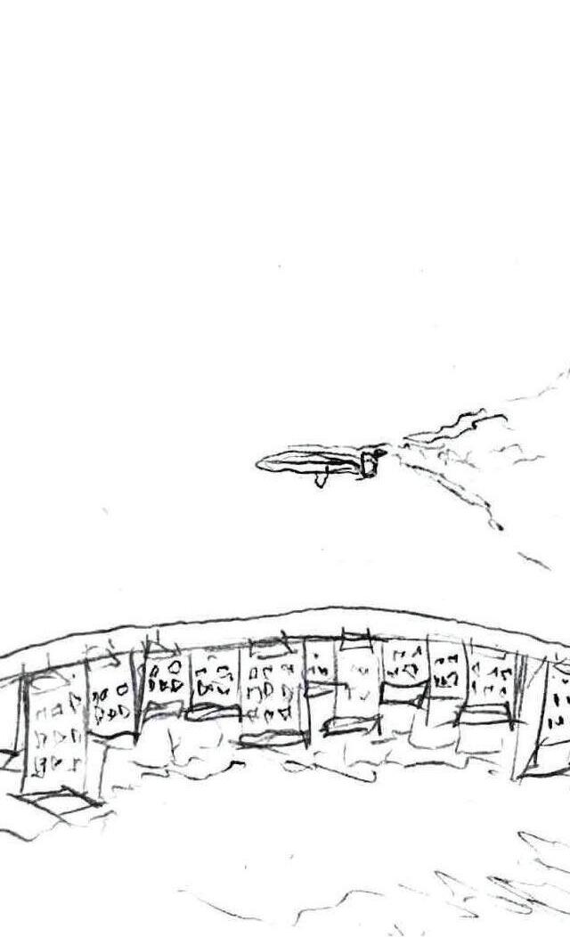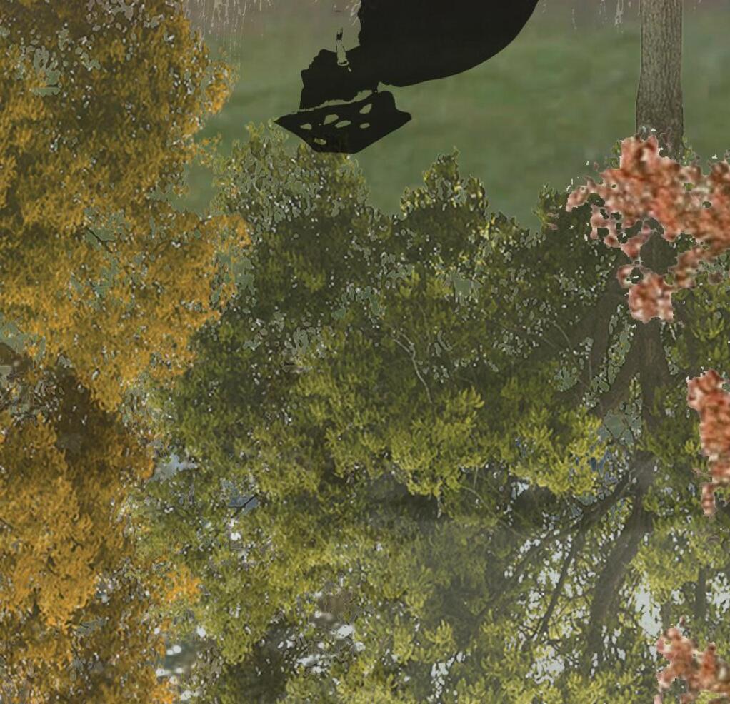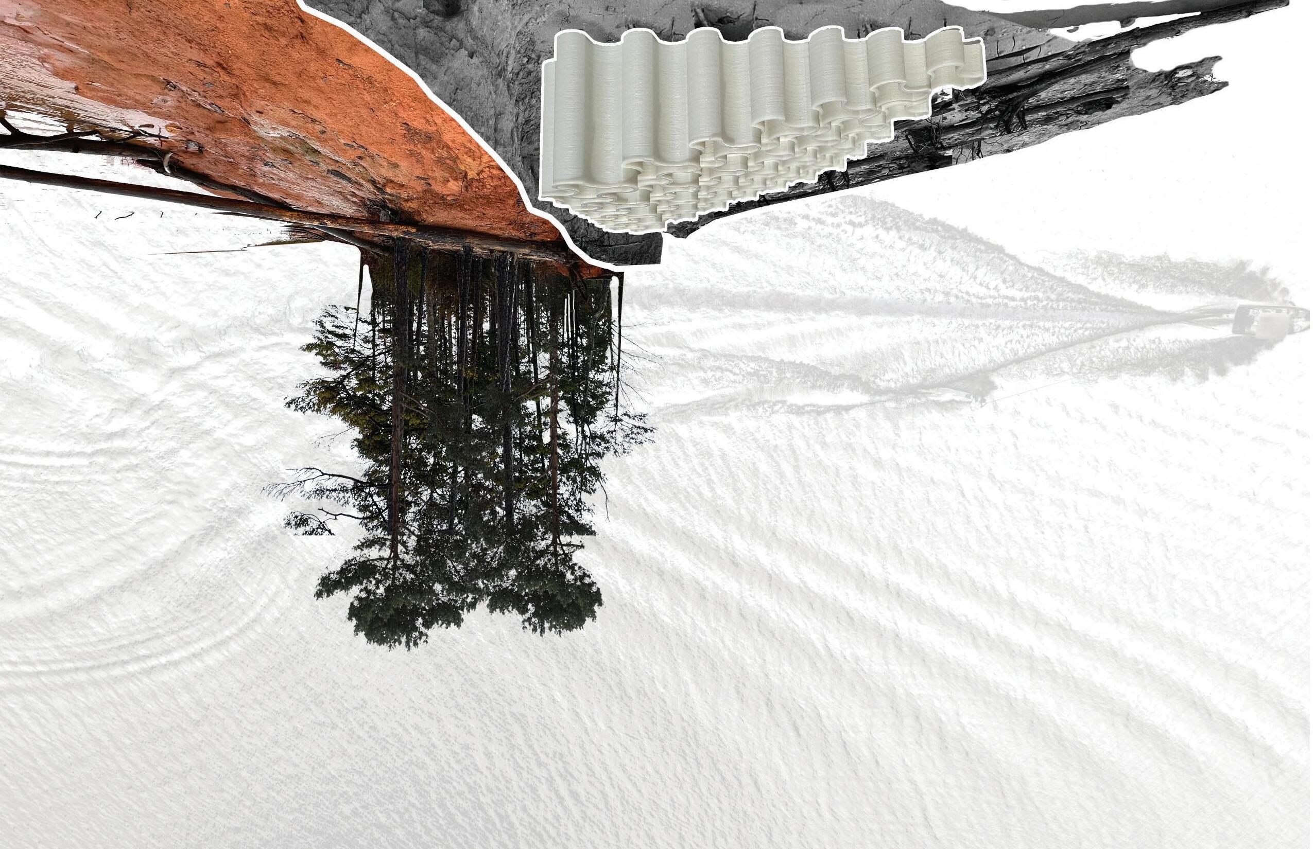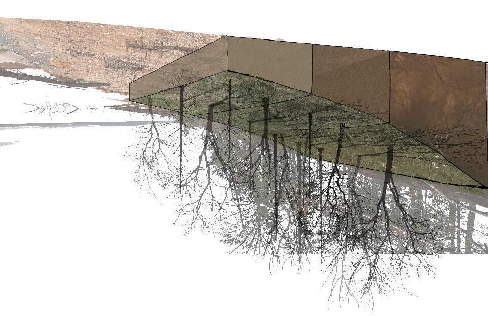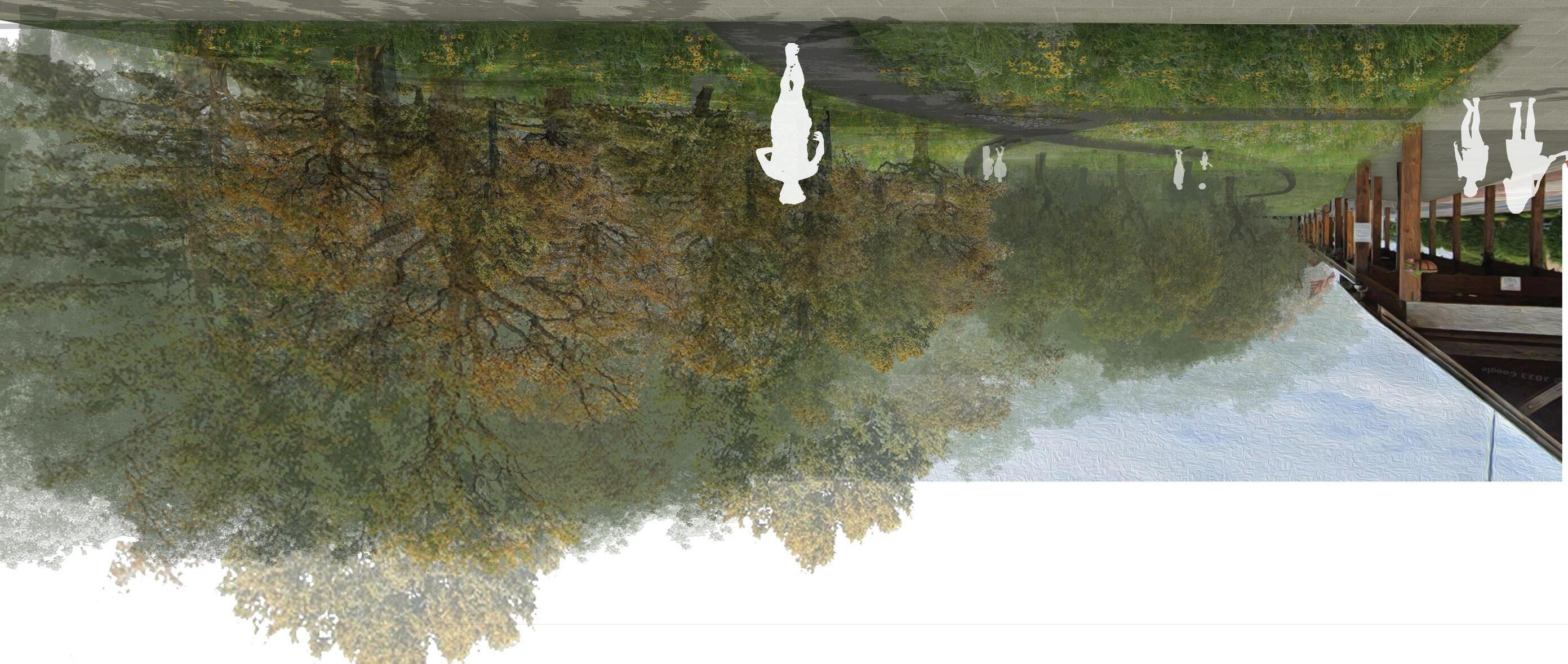 BOTTOM IMAGE: the section of the entrance to the Observable Forest conveys a sense of monumental scale through its structural design and expansive length of the entryway
