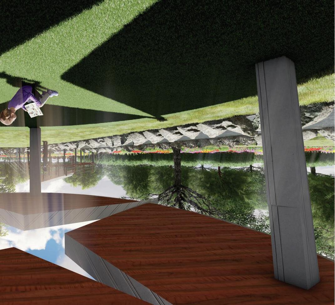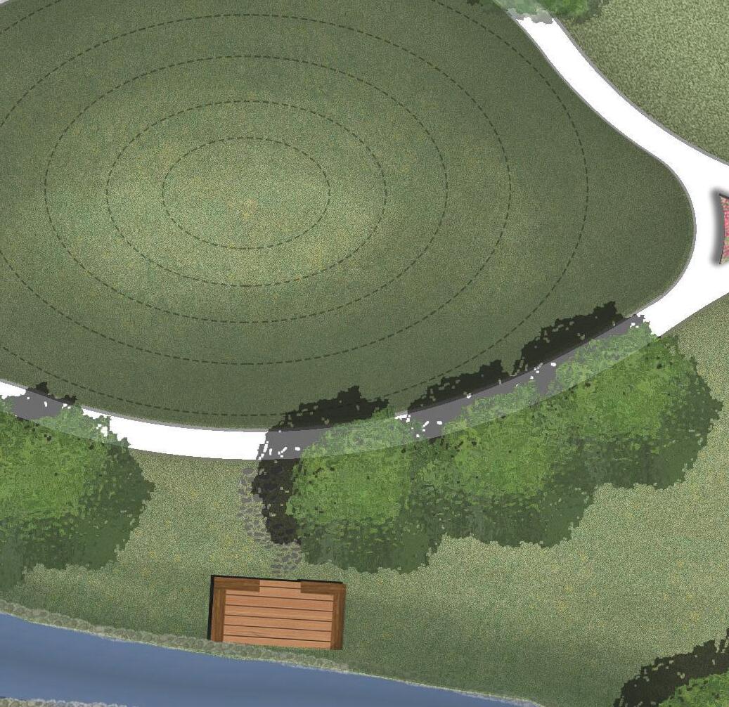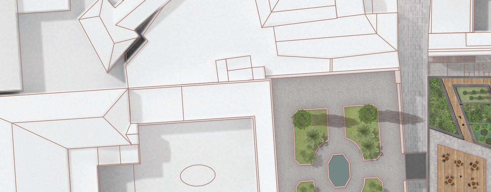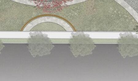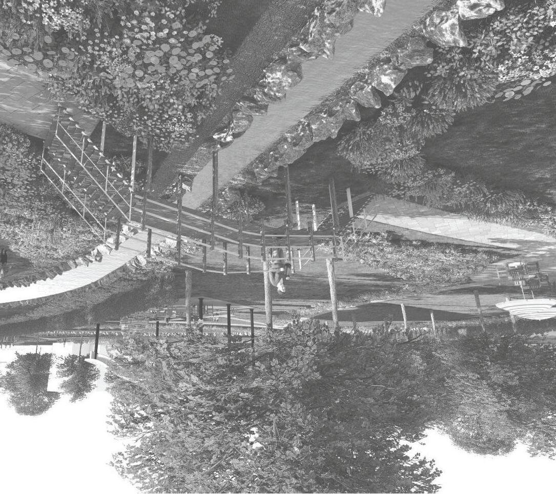 TOP IMAGE: axonometric rendering provides a distinctive perspective of the site, highlighting the relationship between its paths and varying levels