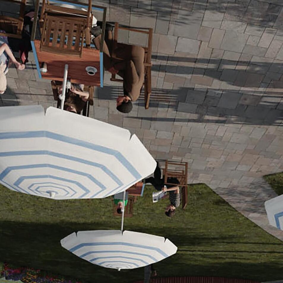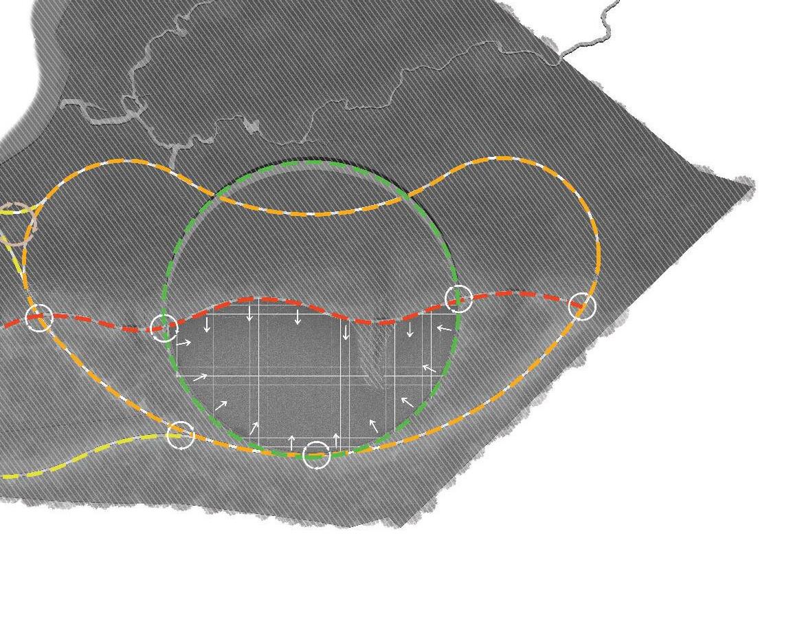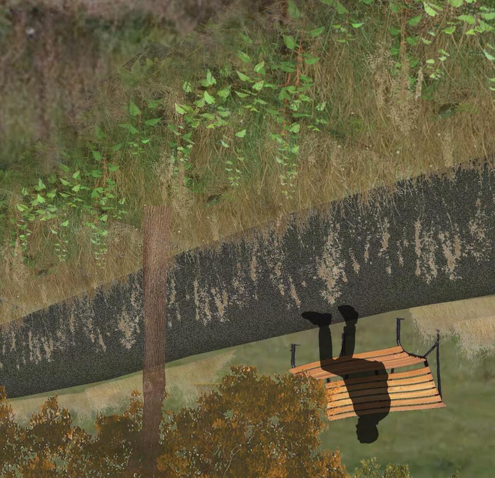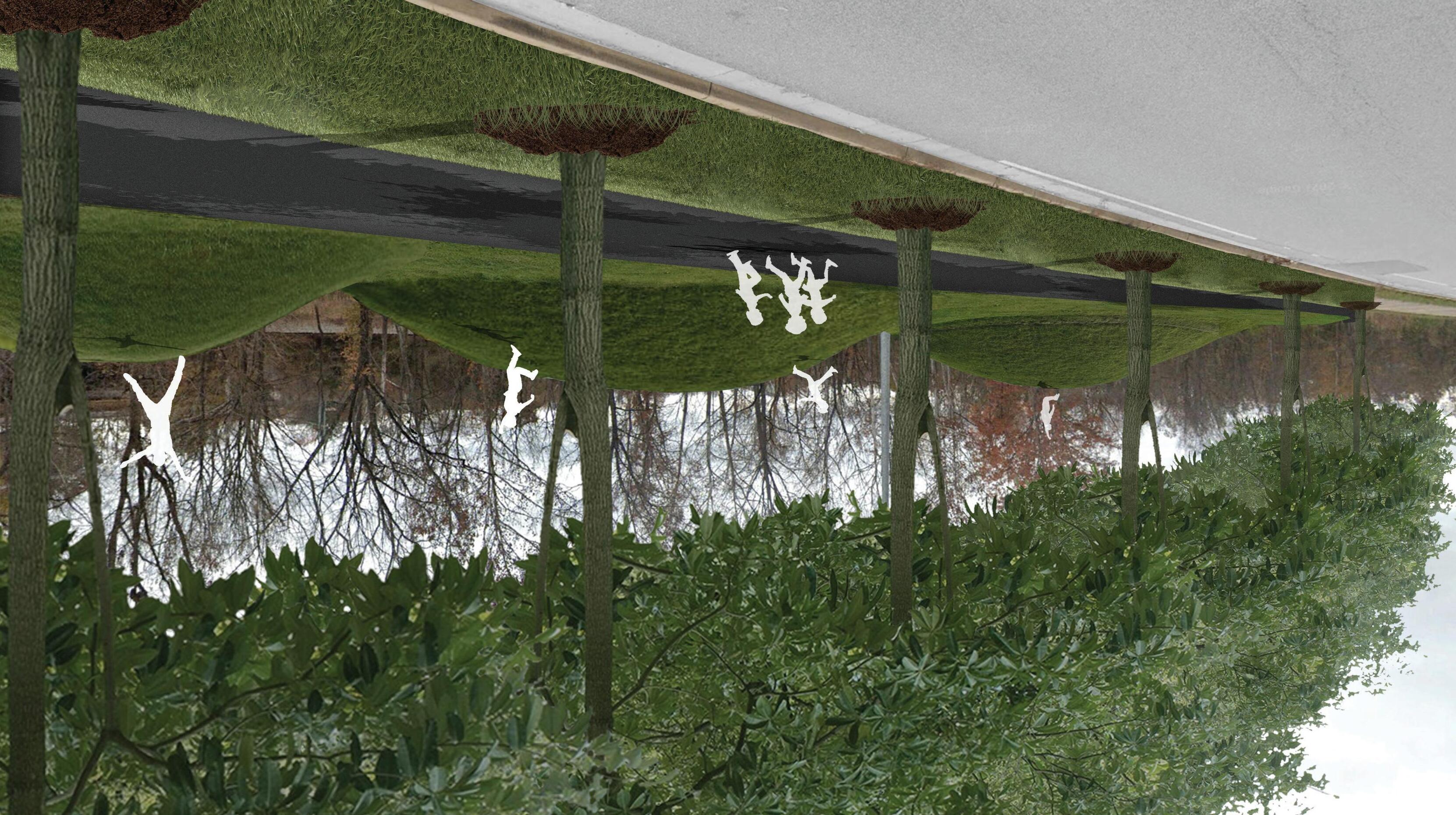 TOP IMAGE: axonometric rendering provides a distinctive perspective of the site, highlighting the relationship between its paths and varying levels