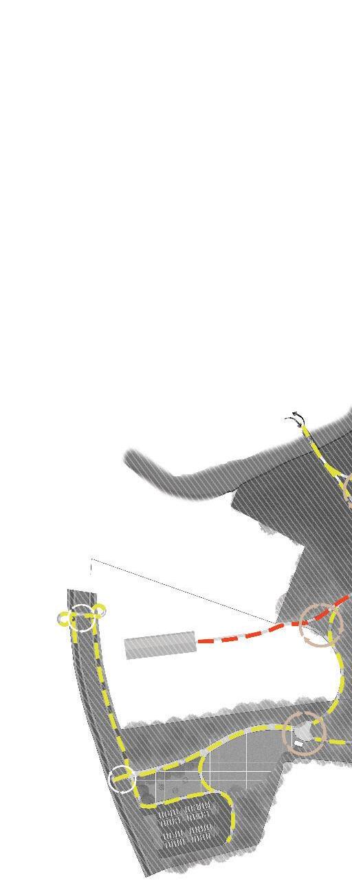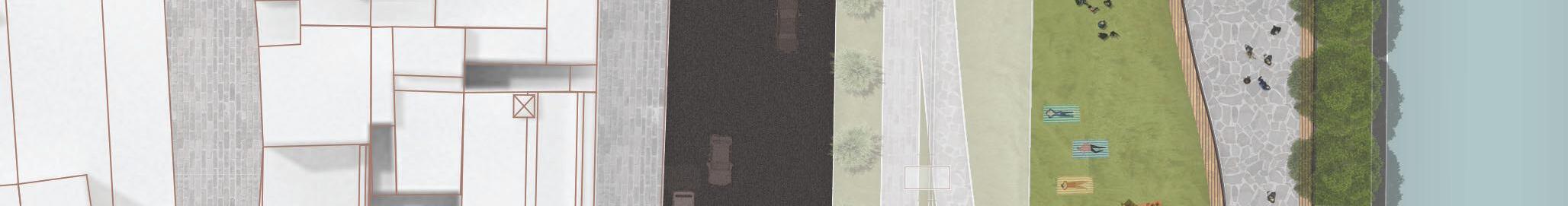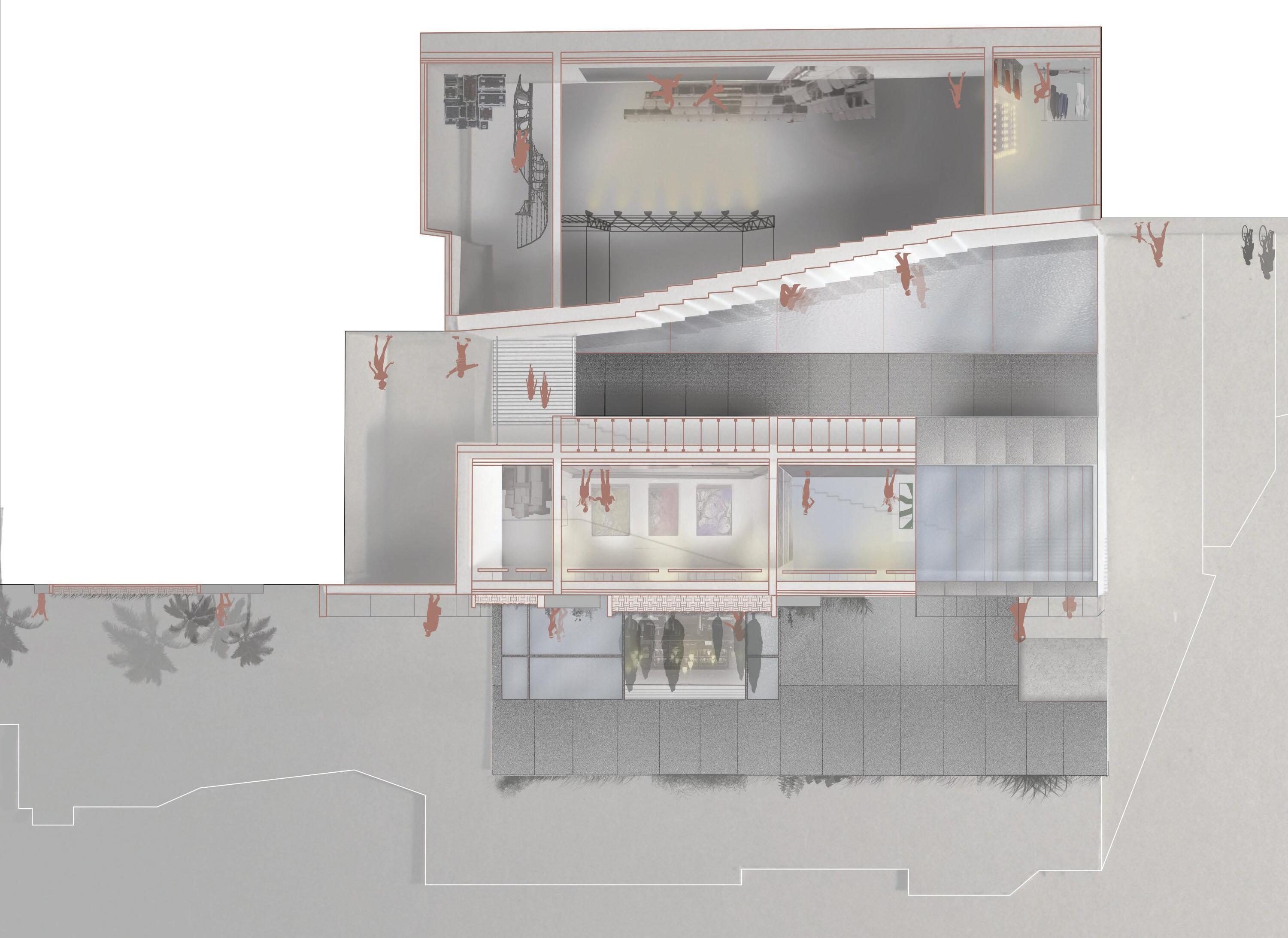 The site section extends from the Palazzo Reale di Genova to the Port of Genoa, offering a comprehensive view of the various programmed spaces and levels. It enhances the understanding of circulation and connectivity across the entire site, showcasing how the different areas are integrated and interconnected.