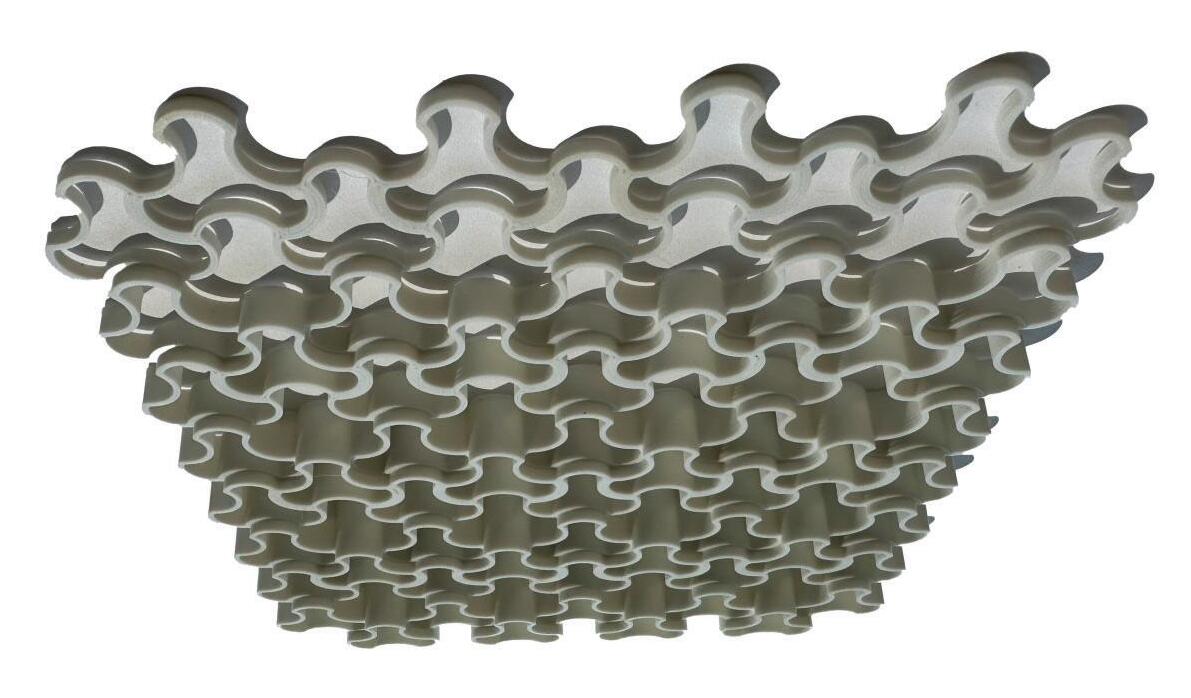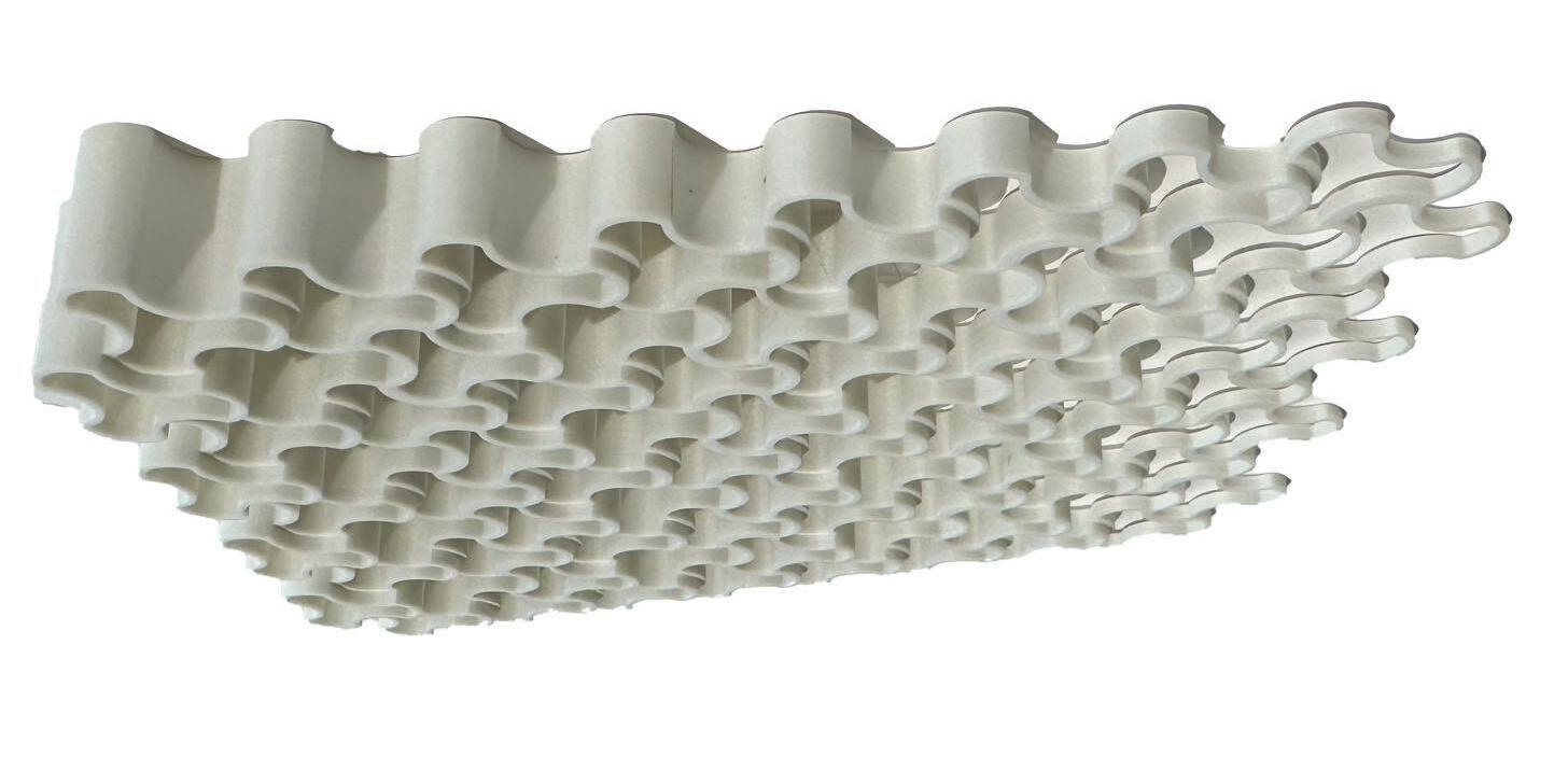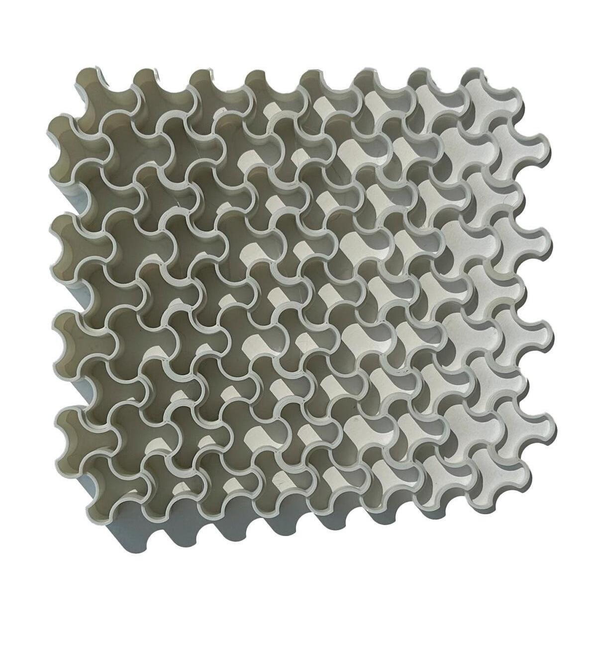 The process began with the exploration and refinement of the prototypeʼs cell shape, focusing on achieving an optimal balance of durability, volume, and tessellation capability. This was followed by material experimentation, assessing the stability of various resources, including clay and small quantities of plaster as potential additives. The final stage involved synthesis, where individual cells were 3D-printed to evaluate the ease of fabrication and to determine whether the prototype could be adapted for different environmental conditions.