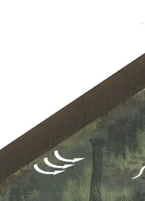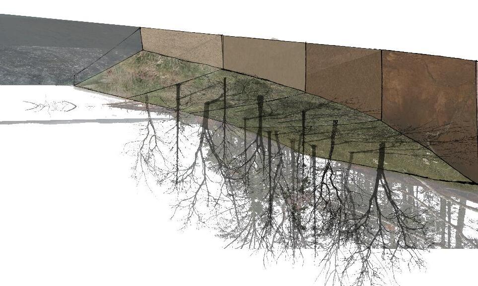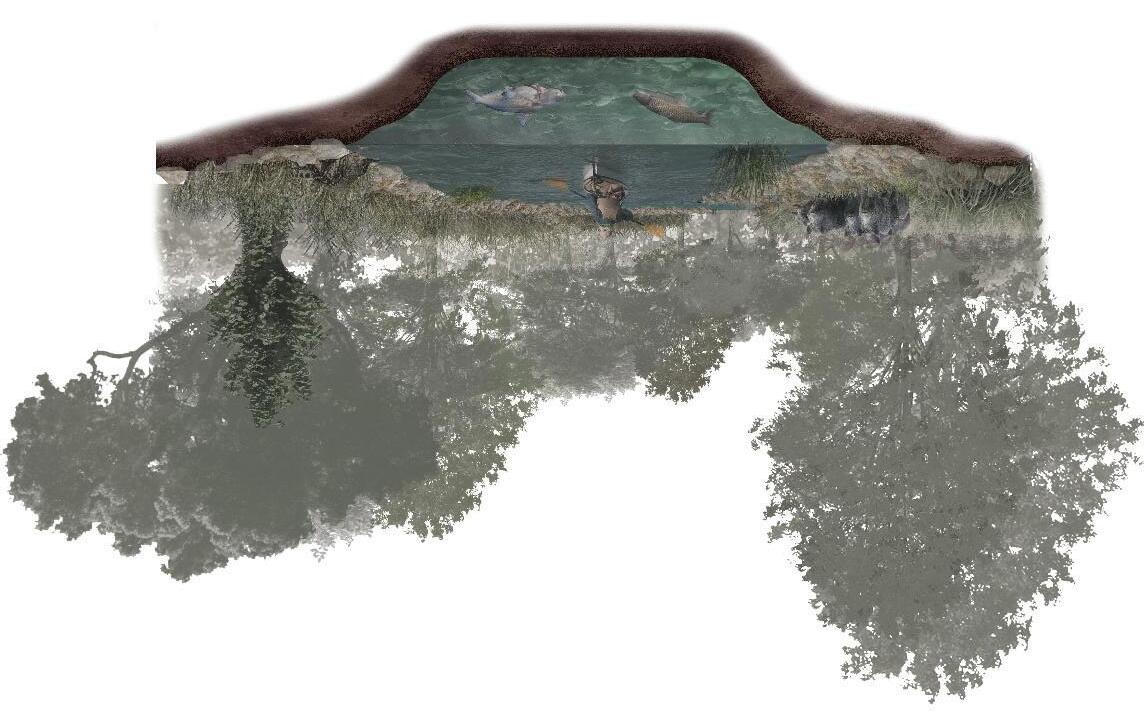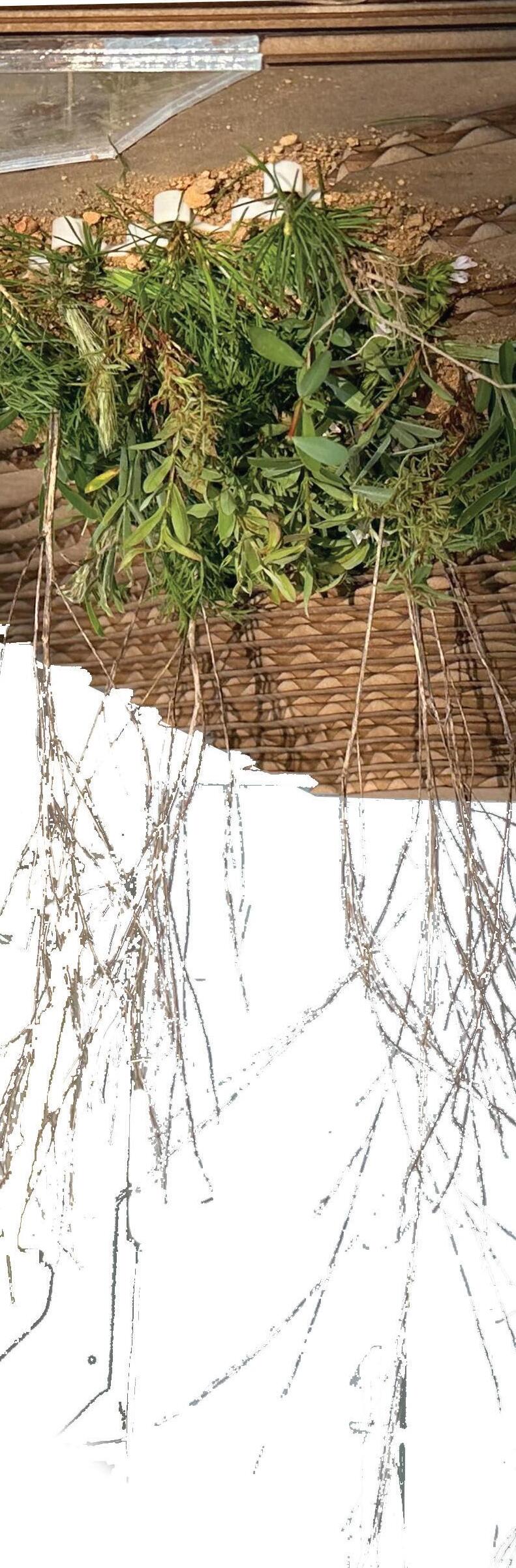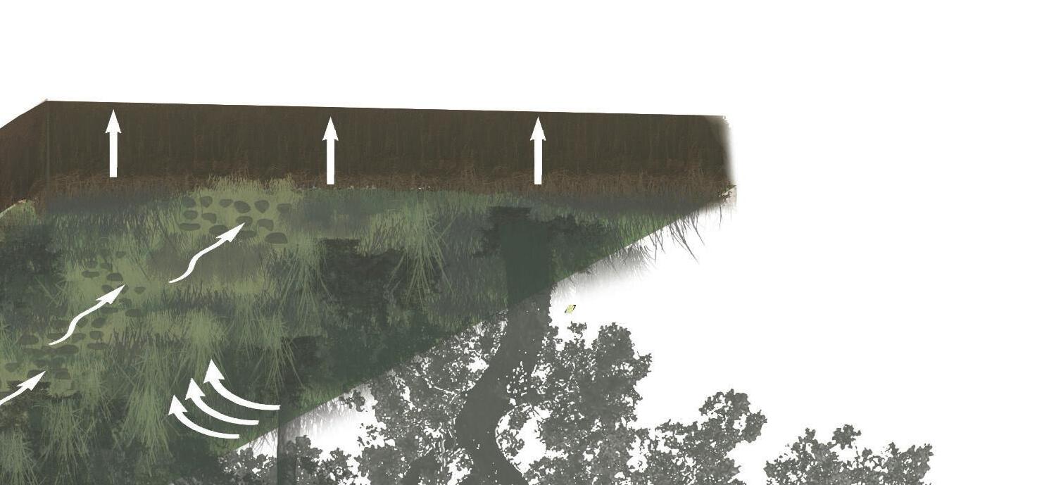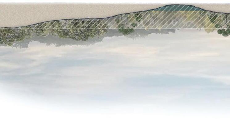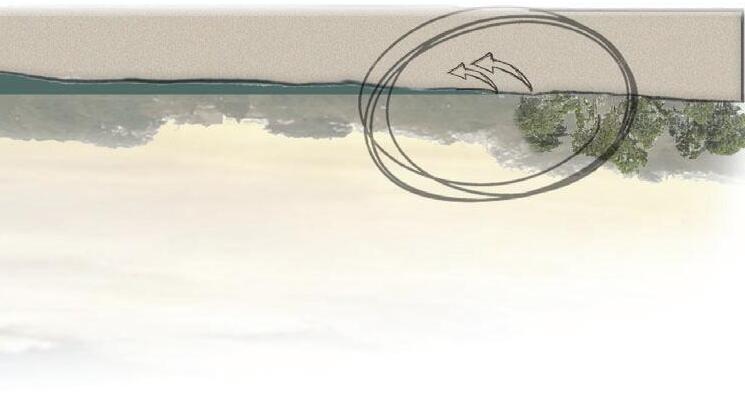 The models accurately represent the siteʼs contours, considering water level fluctuations. Four models, made from chipboard, acrylic, and site-sourced materials, illustrate the process. The first shows existing conditions. In year one, live stakes promote root growth. By year five, vegetation envelops the biostabilizer as roots establish and biodegradation begins. By year ten, the biostabilizer fully decomposes, leaving a selfsustaining ecosystem.