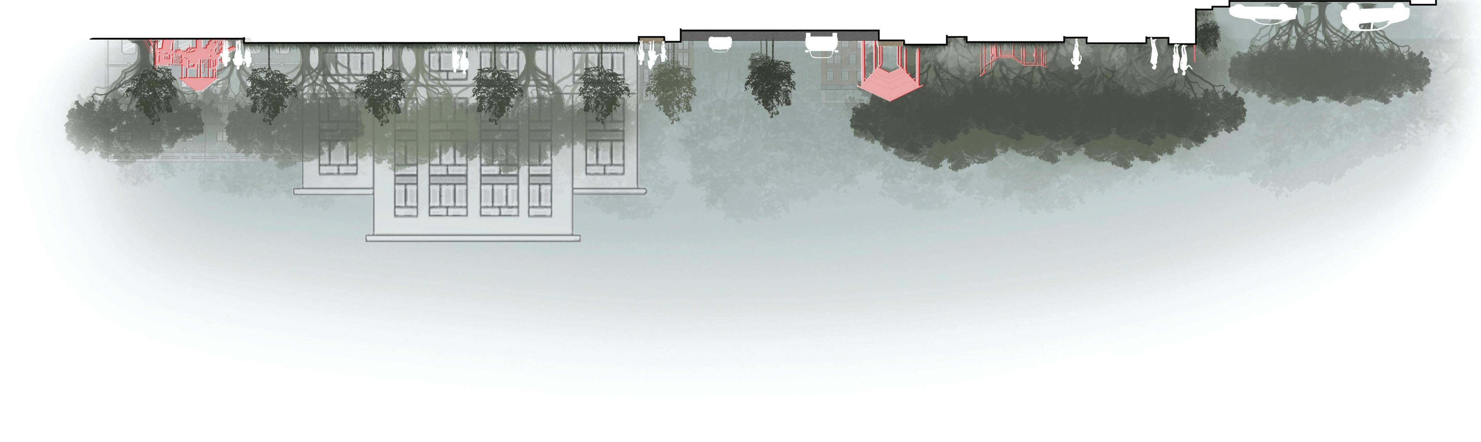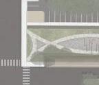 The green ribbon of Seneca transforms urban spaces by replacing hardscapes with sustainable vegetation, enhancing the environment. Previously underutilized parking lots were consolidated to create greenspace, which also acts as a visual buffer to reorganized parking areas. Each block, blending residential and commercial uses, features its own green space and connects to a walkable city network. Ram Cat Alley, a signature pedestrian zone, is designed with warm tones and textures to encourage movement and relaxation. An abandoned passage nearby has been revitalized into a vibrant greenspace and walkway, accessible from three streets, further integrating nature and mobility.