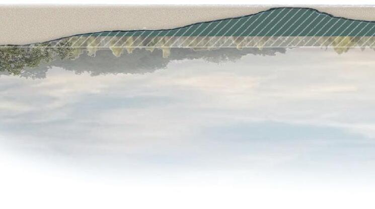 Once fully established, the tiered biostabilizer, which replicates the natural lake edge, would become redundant if implemented properly. It would gradually deteriorate as the root systems of grasses, low vegetation, and trees take hold, allowing for a self-sustaining, naturalized shoreline.