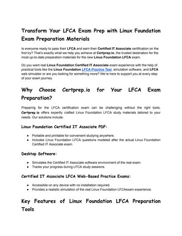 Is everyone ready to pass their LFCA and earn their Certified IT Associate certification on the first try? That’s exactly what we help you achieve at Certprep io, the trusted destination for the most up-to-date preparation materials for the new Linux Foundation LFCA exam.
