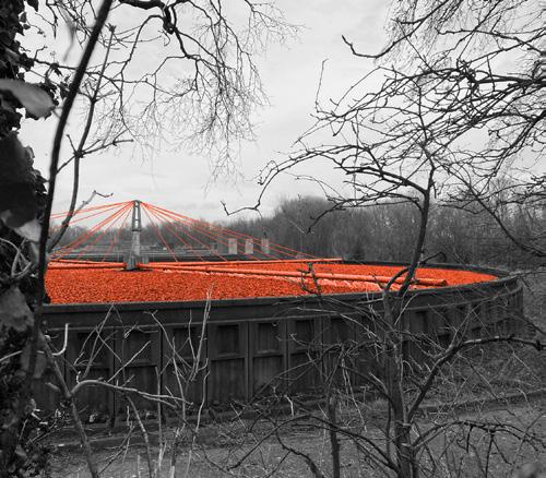 As part of a renewable energy incentive, many UK WWTWs have been fitted with large PV arrays. These have been relocated to the roof of the sedimentation tank, and easily provide more than enough solar power to run the existing site, let alone the now-reduced facilities.