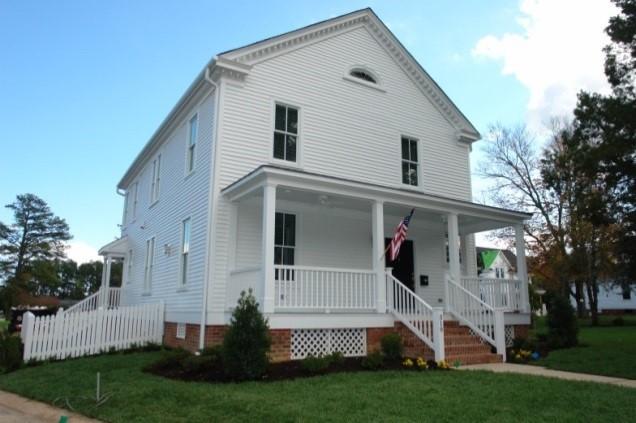 Most of the surviving older architectural structures outside the Colonial Williamsburg Historic Area are Colonial Revival houses. This popular style began to appear in the city’s outlying neighborhoods at the turn-of-the-century and gained popularity in the late 1920s and 1930s and the post-World War II era. Colonial Revival houses in Williamsburg have four basic forms: