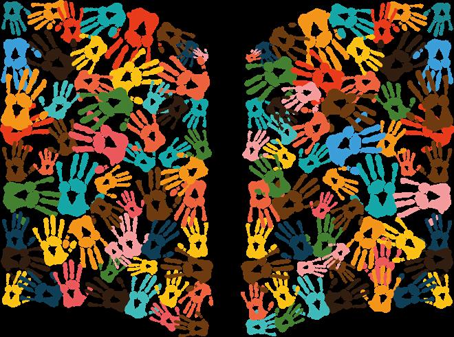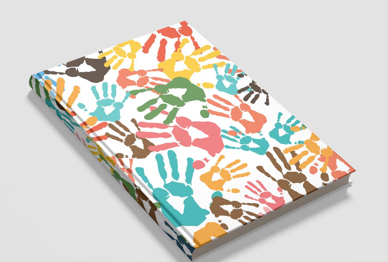 It’s more than that though the book is created with a combination of handprints in different colours and sizes to represent the a diverse range voices being heard with peoples hands. Also, you read and write book with your hands so therefore it is a good fit. I believe this visual identifier matches the core values of a decolonised world.