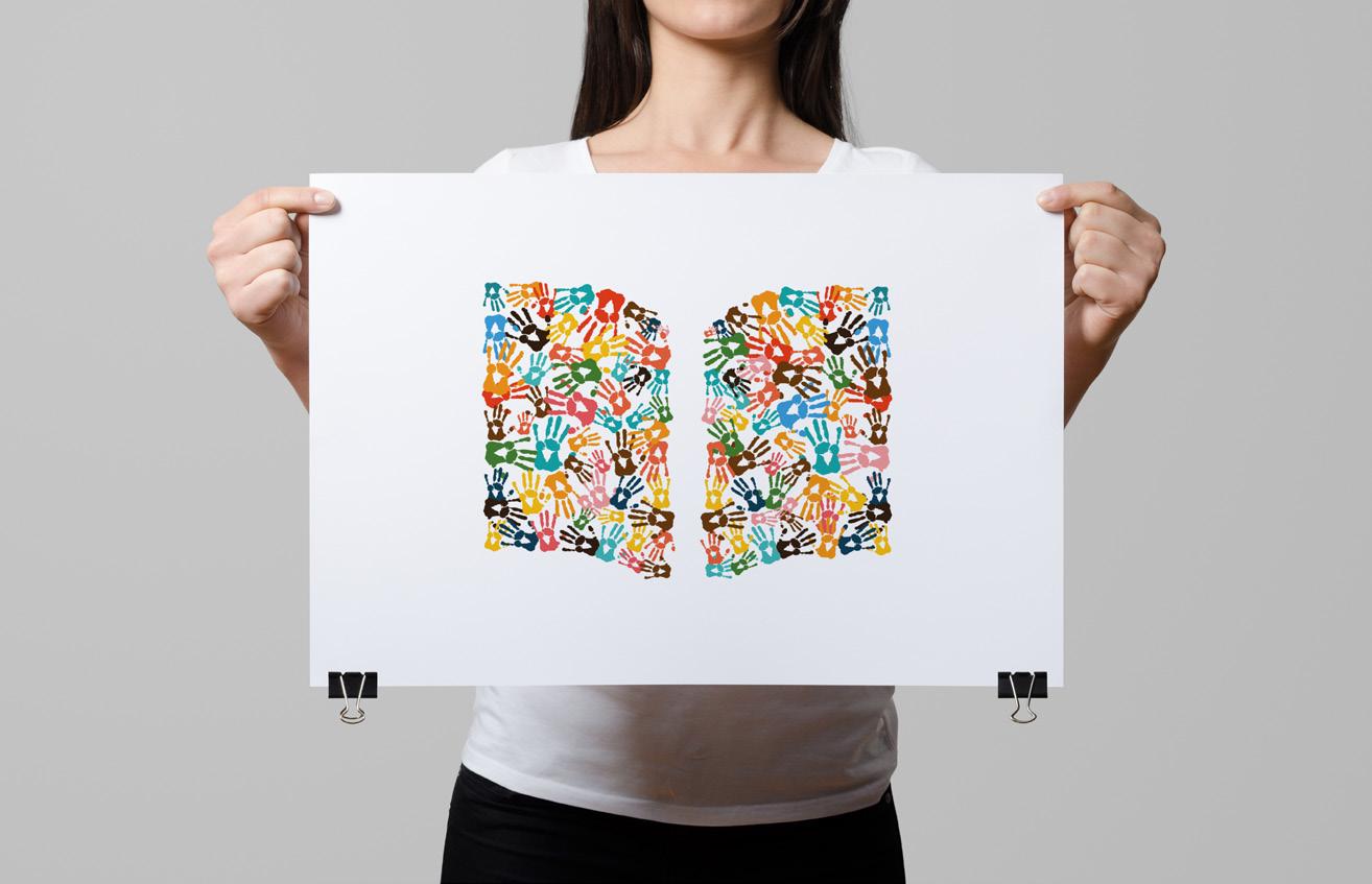 A large number of handprints appear this is to give off the value of accessibility in that everyone’s book can be read which this project is looking to do. The colours where chosen as the are varied from one another therefore helping the design stand out on page.