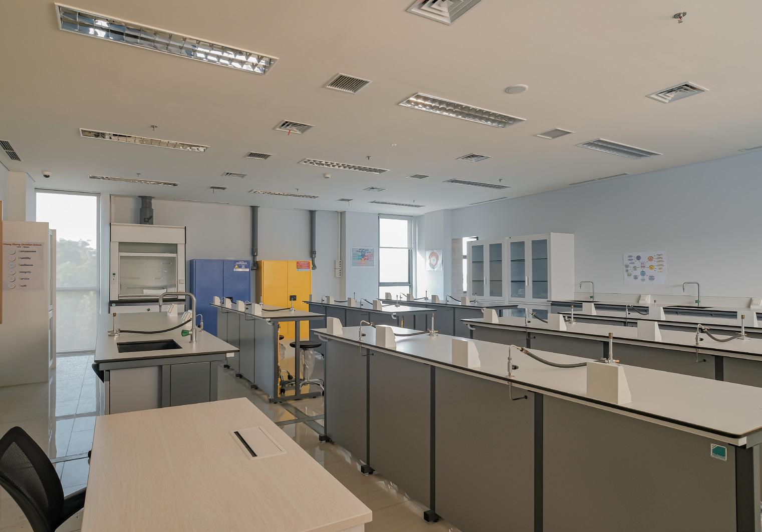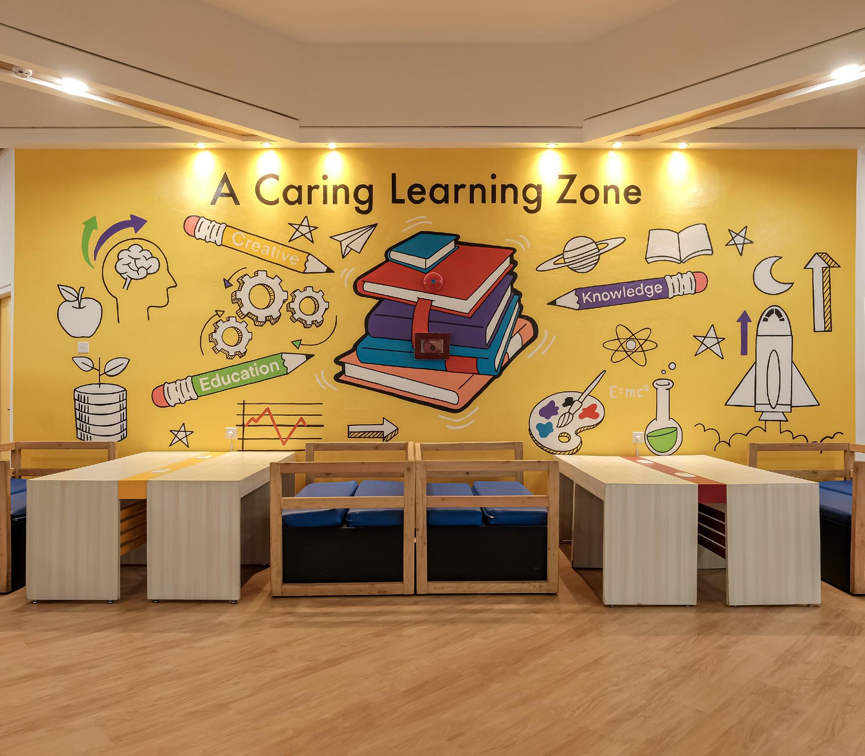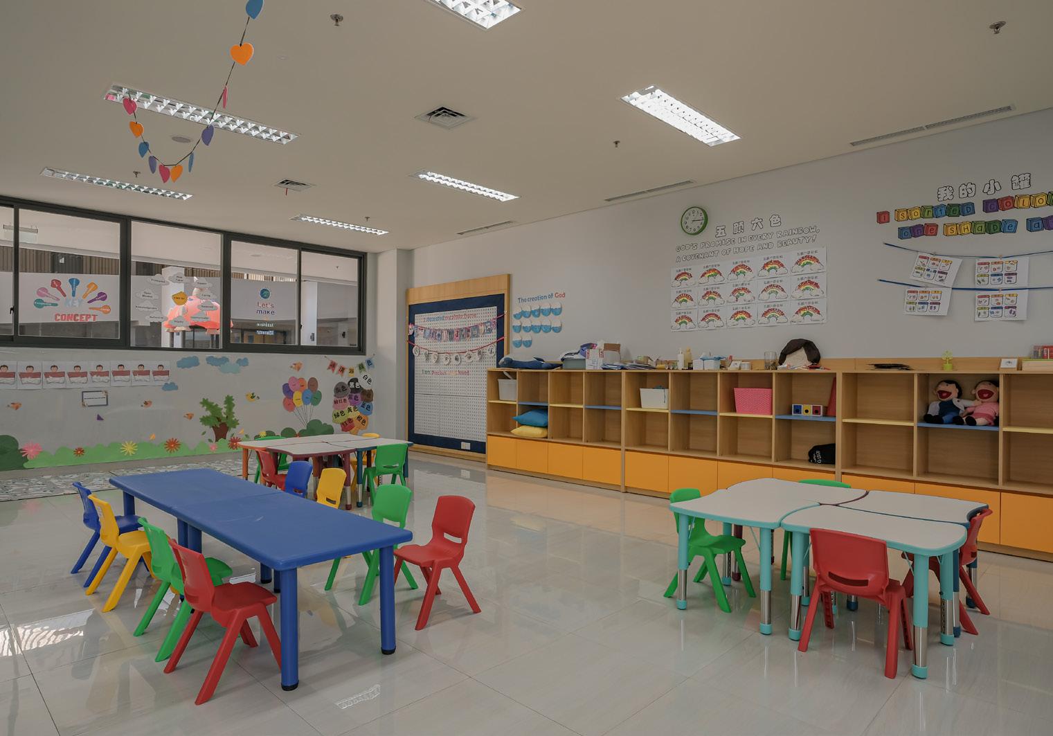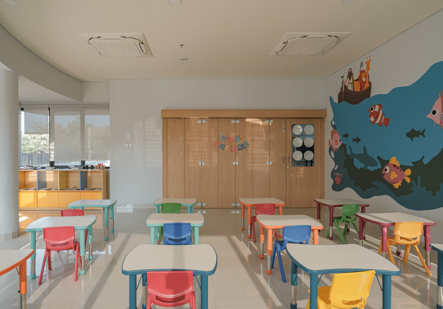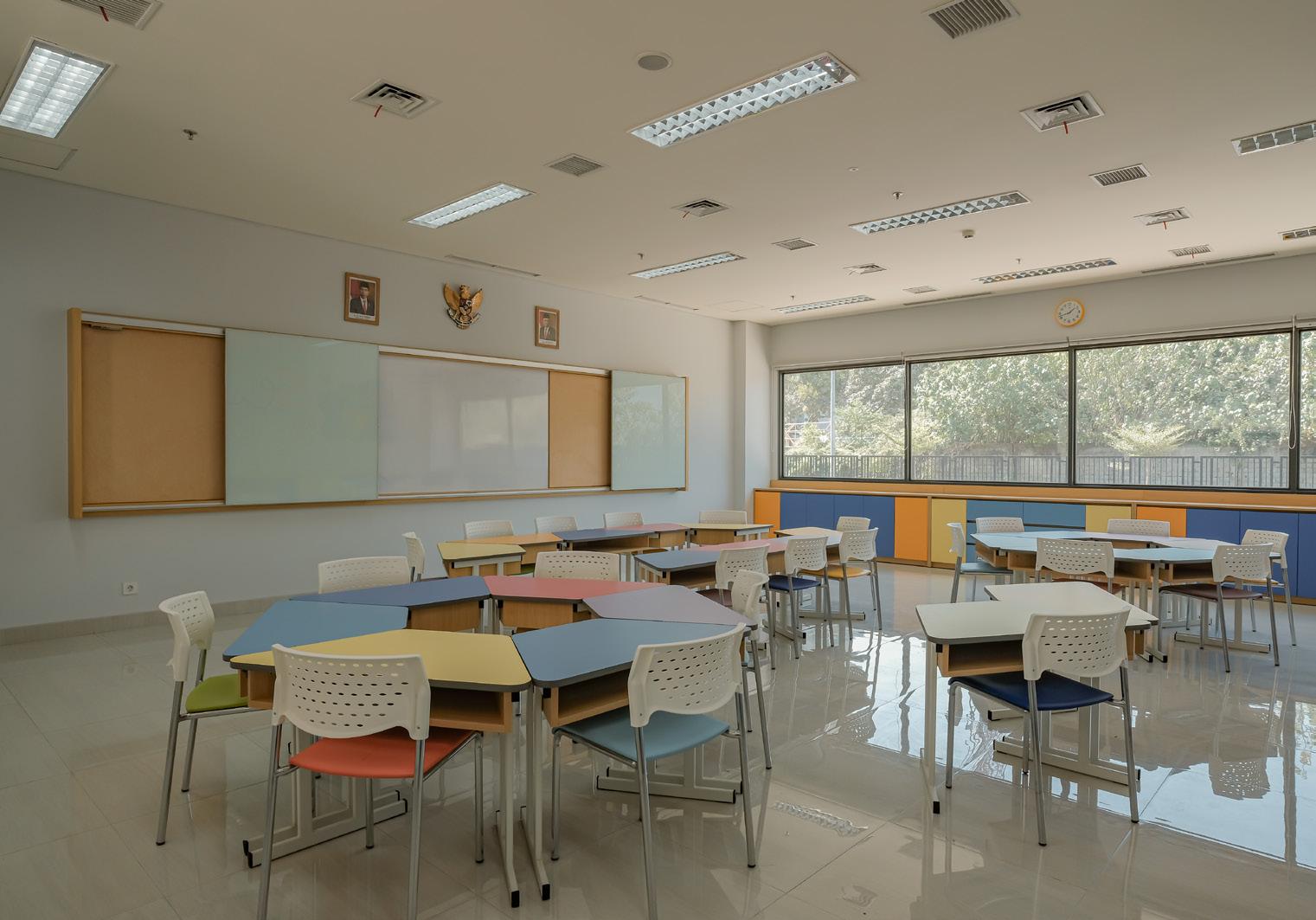 Desain interior gedung sekolah yang melingkupi keseluruhan ruang belajar, ruang kesenian, labolatorium, ruang kantor, serta ruang-ruang pendukung proses belajar mengajar ini disusun dengan konsep fun educational activity sesuai dengan kurikulum international baccalaureate yang dipakai pada sekolah ini. Komposisi antara fun dan serious menjadi dasar acuan desain sesuai dengan jenjang pendidikan yang ada, semakin dini maka semakin banyak persentase elemen fun, dan semakin dewasa maka semakin banyak persentase elemen serious.
