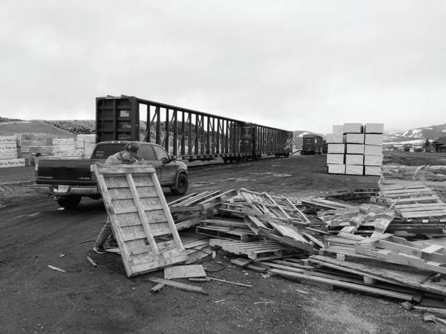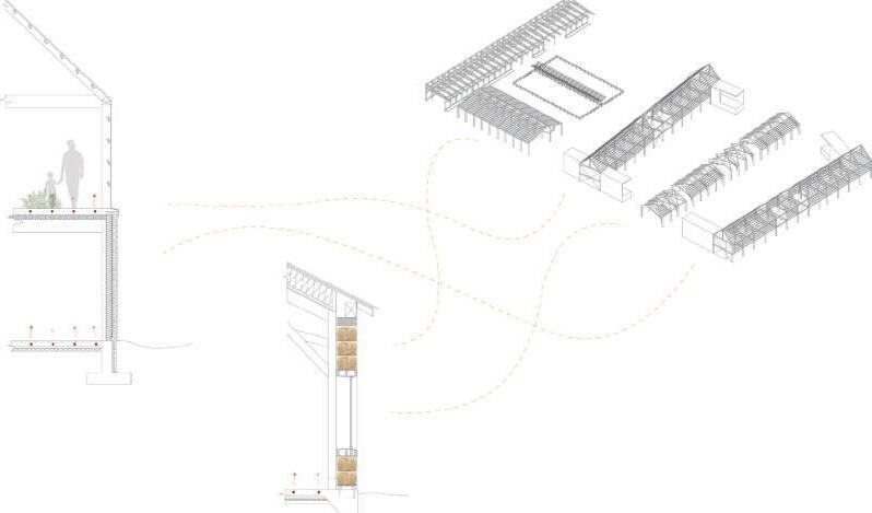 During a ‘locally fabricated’ studio conducted by MASS Principal Architect and Montana native Sarah Mohland, vernacular construction, and sourcing were researched to combat what we dubbed ‘fast architecture.’ After this stage, we attempted our scaled-down physical manifestation of lo-fab and its potential. To do this, I focused on the historic vernacular architecture of grain elevators in rural Montana, constructed using a method called ‘cribbing,’ which is the stacking of 2x4s. To attempt to re-invent this inherently beautiful method more sustainability, I sourced waste wood 2x4 scrap from a local truss factory, stacked them in a gradient pattern, and dowel laminated the resulting wall to connect them without carbon-intensive metal fasteners, making it easy to reconstruct. Finally, to add interest and bring it into the 21st century, CNC technology to intensified the gradient and bring depth. The result was an easyto-understand, carbon-negative lo-fab partition wall/rain screen.