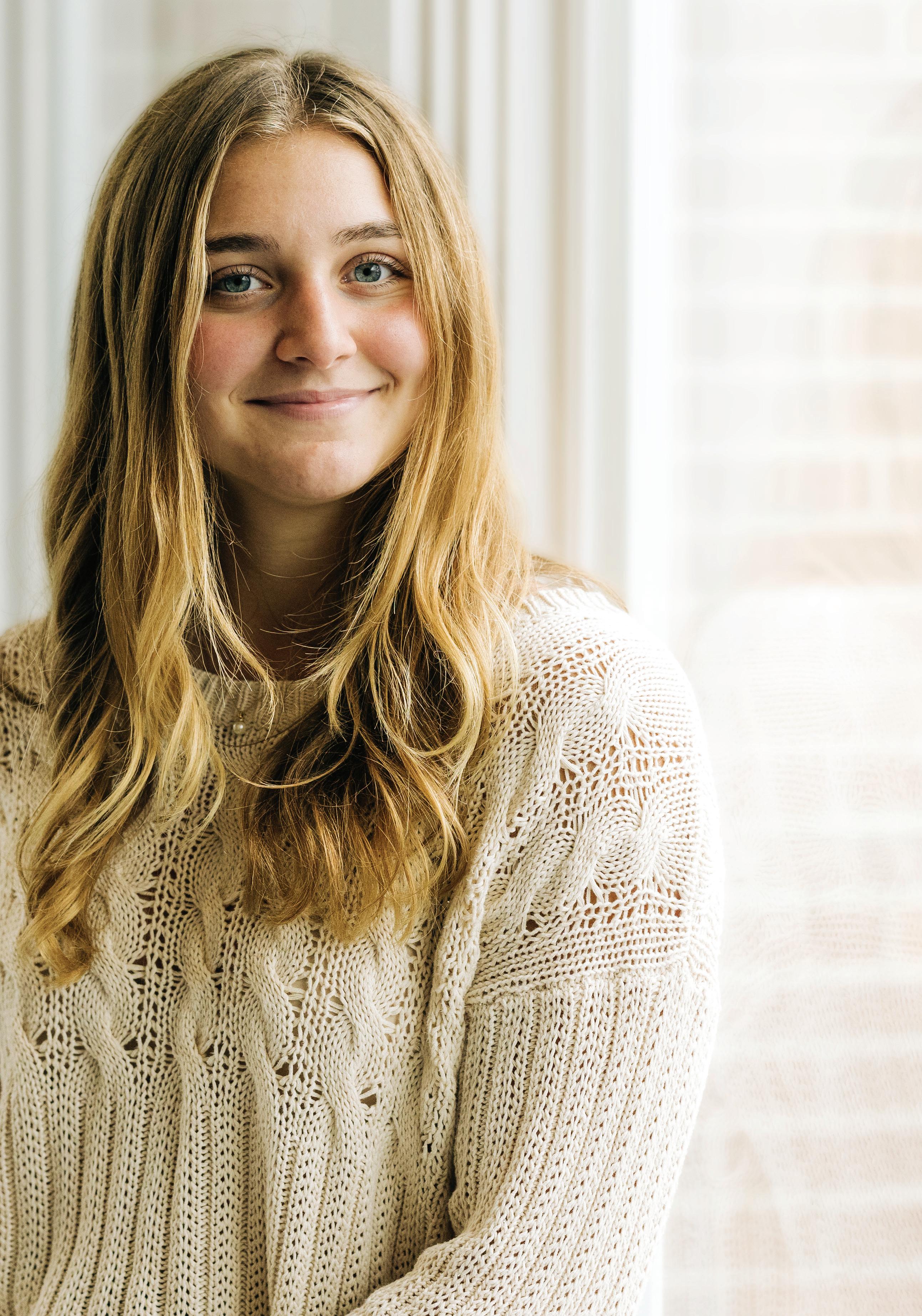 A boarding student from Maine, Maggie is the editor of the school yearbook, a role that has sparked her love of photography and graphic design. “Being the editor gives me a special window on the school today and historically,” she says. Williston actually is a part of her own family’s history—her mom, Melissa, graduated in 1991 and her sister Teaghan in 2024. In addition to a busy schedule of AP and honors classes, Maggie also plays field hockey, is on the swim and dive team, and does sports photography.