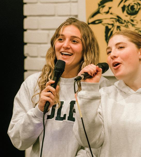 “Open mic night takes place before winter break, everyone gathers in Tandem, a small, cozy space where there’s hot chocolate, iced chai, and snacks, and we sing favorite songs—Springsteen, Hamilton, and holiday songs. It’s truly special.”