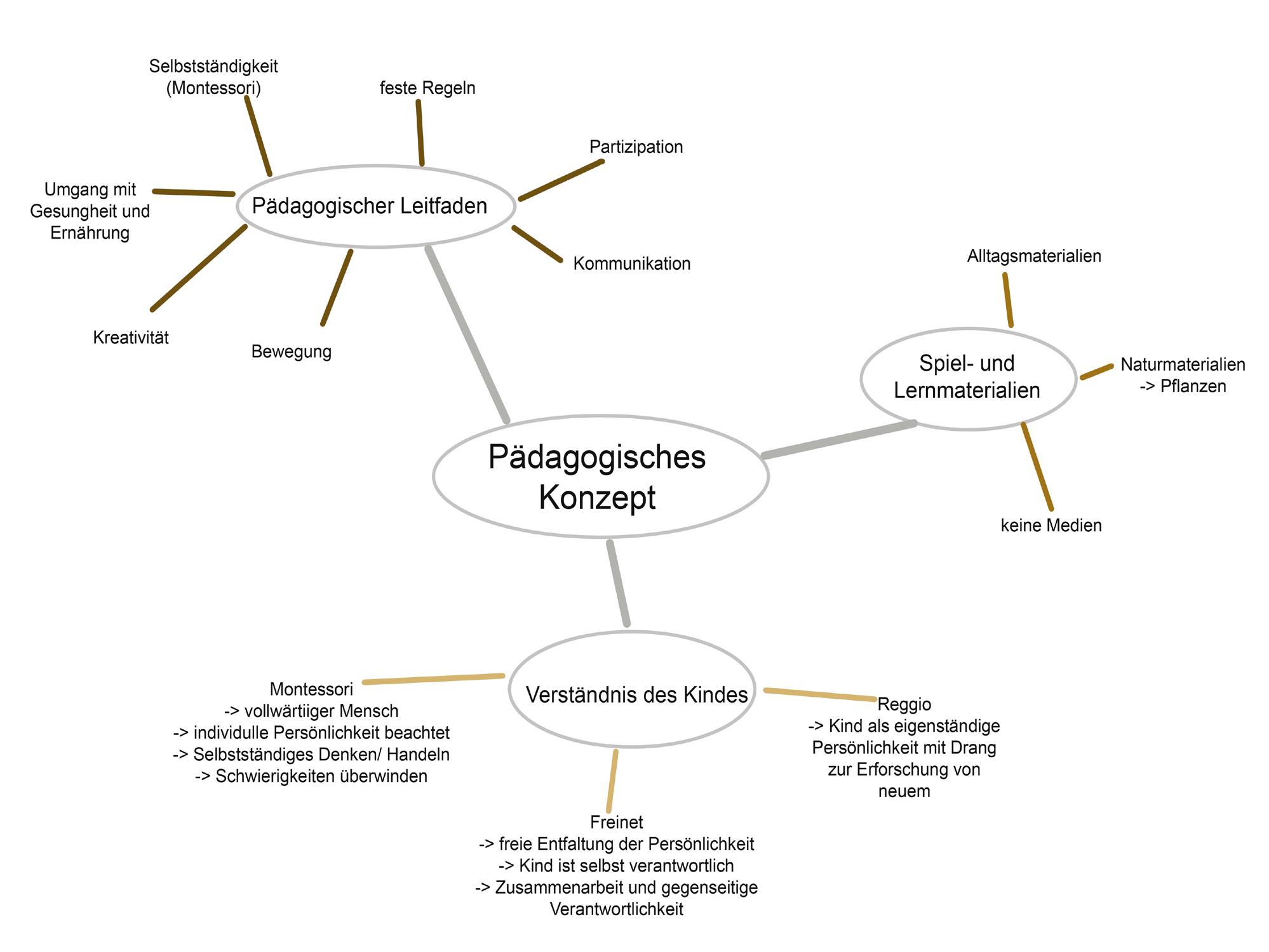 Das Kind mit seiner eigenständigen Persönlichkeit spielt die zentrale Rolle im pädagogischen Alltag unserer Einrichtung. Die pädagogische Konzeption orientiert sich an dem nachfolgenden prinzipiellen Ansatz: Das Kind steht im Mittelpunkt des pädagogischen Handelns, um den Heranwachsenden einen bestmöglichen Entwicklungs- und Entfaltungsraum zu gewährleisten. Einen großen Freiraum erhält das Kind durch eigenständige, individuelle Alltagsgestaltung. Die Kinder lernen voneinander durch die gemeinsamen Interaktionen, entwickeln ein Verantwortungsbewusstsein und nehmen individuelle Lernimpulse wahr. Zudem wird auf die Vermittlung des Achtsamkeits- und Nachhaltigkeitsgedanken im täglichen sozialen Umgang miteinander Wert gelegt. Die Kinder bekommen die Möglichkeit einen Umgang und ein Bewusstsein für das Erlernen, Erweitern und Ausprobieren neuer Kompetenzen zu erlangen. Zur räumlichen Unterstützung kindlicher Lern- und Bildungsprozesse im Kindergarten stehen unterschiedliche ThemenräumeW mit einer offenen und übersichtlichen Raumgestaltung zur dauerhaften täglichen Nutzung zur Verfügung. Das Kind kann durch das offene Konzept selbstständig entscheiden, in welchem Bereich der Einrichtung es sich aufhält. Die offene Raumgestaltung ermöglicht jedem Kind den Zugang zu seinen individuellen Interessen und Vorlieben. Die Fachkräfte geben den Kindern wenig vor und überlassen die Wahl der Schwerpunktthemenbereiche im Alltag den Kindern selbst. Tätigkeiten der Heranwachsenden werden durch die entsprechende Raumgestaltung sowie auch die Fachkräfte unterstützt, damit sie die jeweiligen Kompetenzen durch freiwillige Hilfestellungen oder ihren eigenen Ideen weiterentwickeln können.