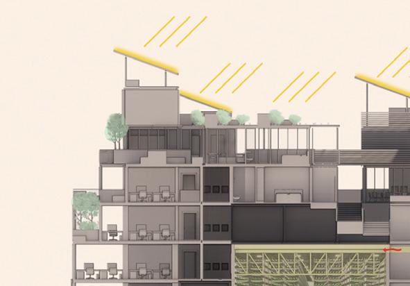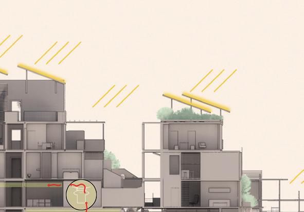 entstehen. Von diesen Potenzialen sowie von der Wahl der eingesetzten Materialien, der Gebäudetiefen und –höhen, der Nutzungsmischung aus verschiedenen Wohn- und Gewerbeformen und der Wahl individueller Energiekonzepte sollte sich der Entwurfsansatz ableiten. Das Seminar zielte, anders als im klassischen Entwurfsprozess üblich, darauf ab, mit dem Energiekonzept zu entwerfen und die gebäudetechnischen Komponenten von Anfang an im Entwurfsprozess zu berücksichtigen und sie als architektonisch wirksame Gestaltungselemente einzusetzen. Die hier vorgestellten Entwürfe entstanden aus Fragen, die sich eine heute zeitgemäße Architektur stellen muss: