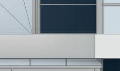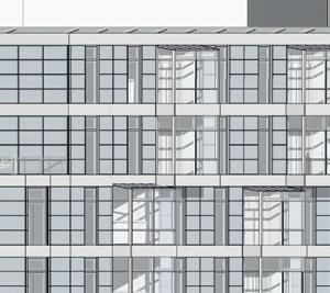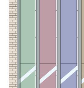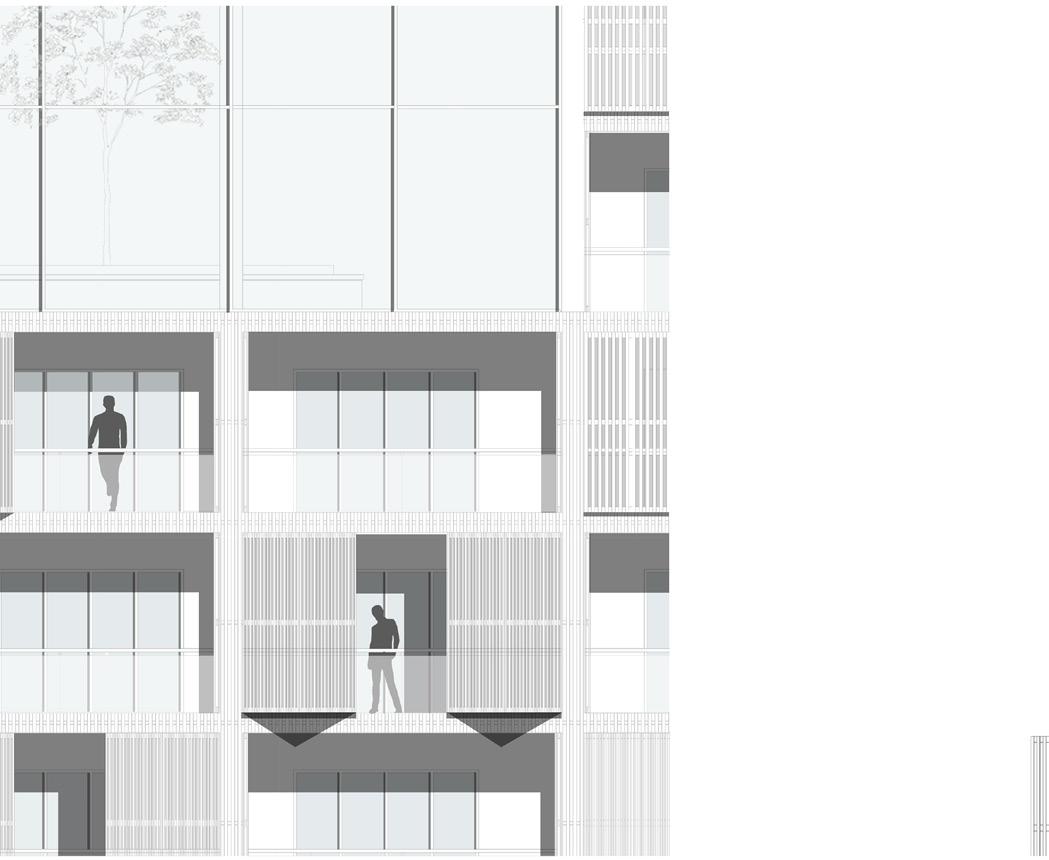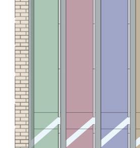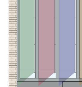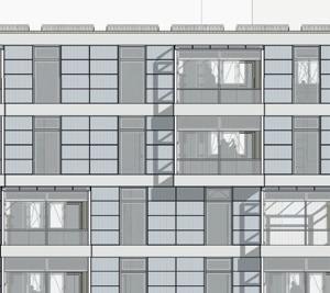 Ausschnitt Fassadenschnitt und -ansicht mit Sonnenschutzlamellen