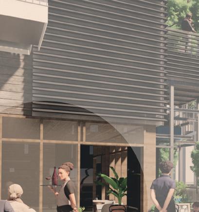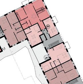 Hof-Cluster_Zwei- bis dreigeschossige, L-förmige Garten-Hofhäuser auf einbis zweigeschossigem Gewerbe oder kultureller Nutzung (z.B. Markthalle, Stadtteilbibliothek o.ä.)