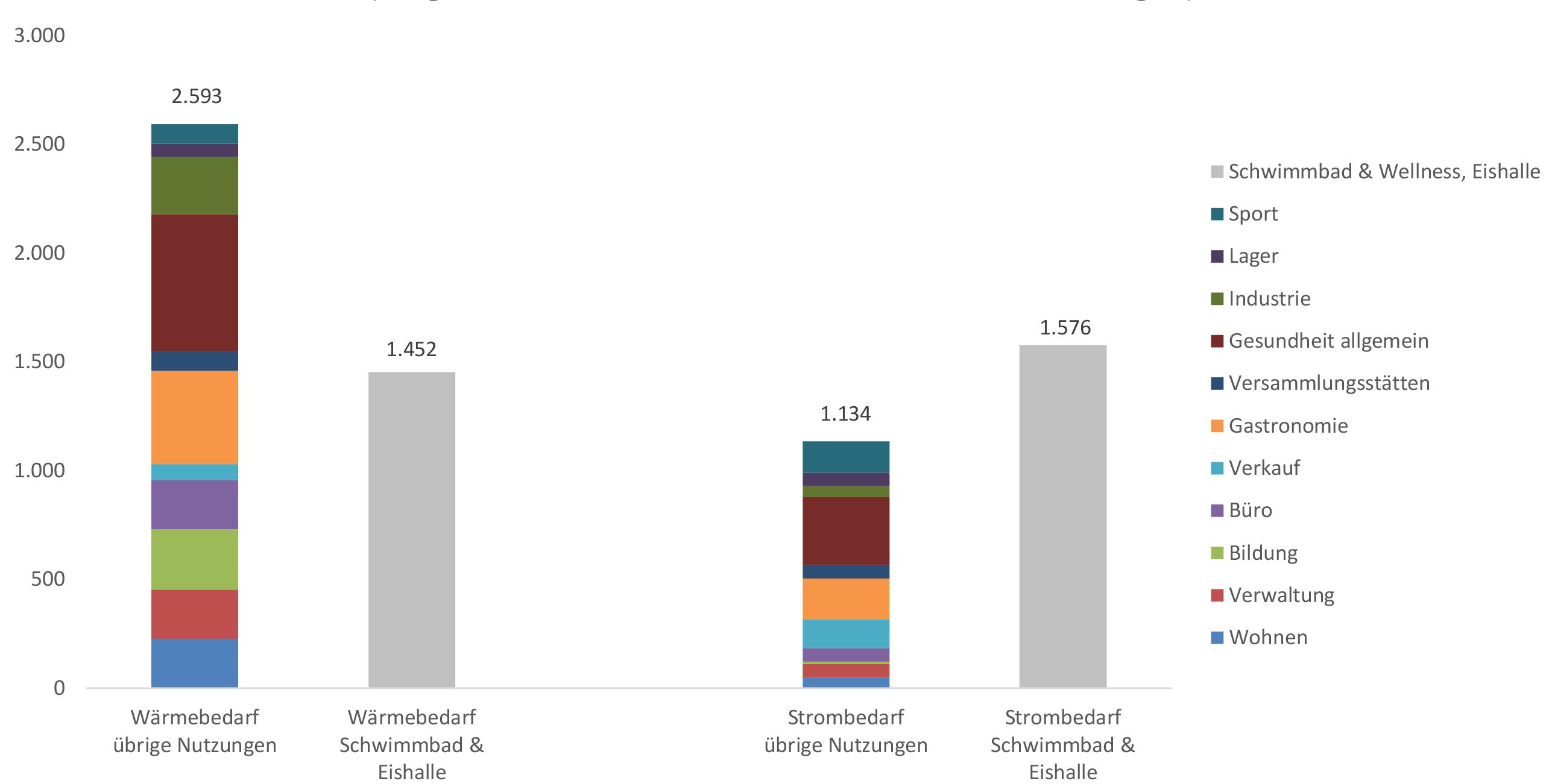 Energiebedarf pro Nutzung in MJ/qm (Vergleich Schwimmbad & Eishalle mit anderen Nutzungen)