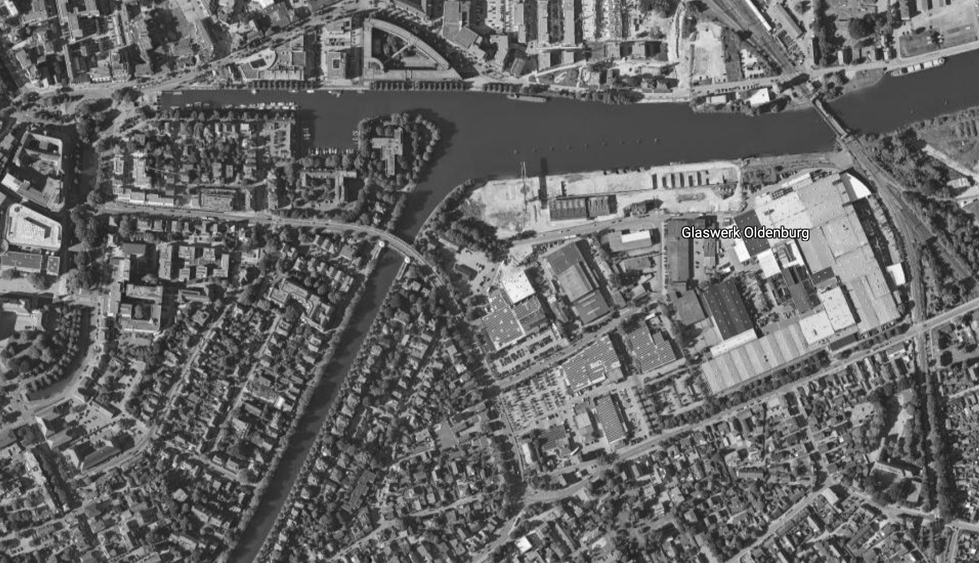 Luftbild des heutigen Gewerbeareals südlich angrenzend an den Oldenburger Hafen