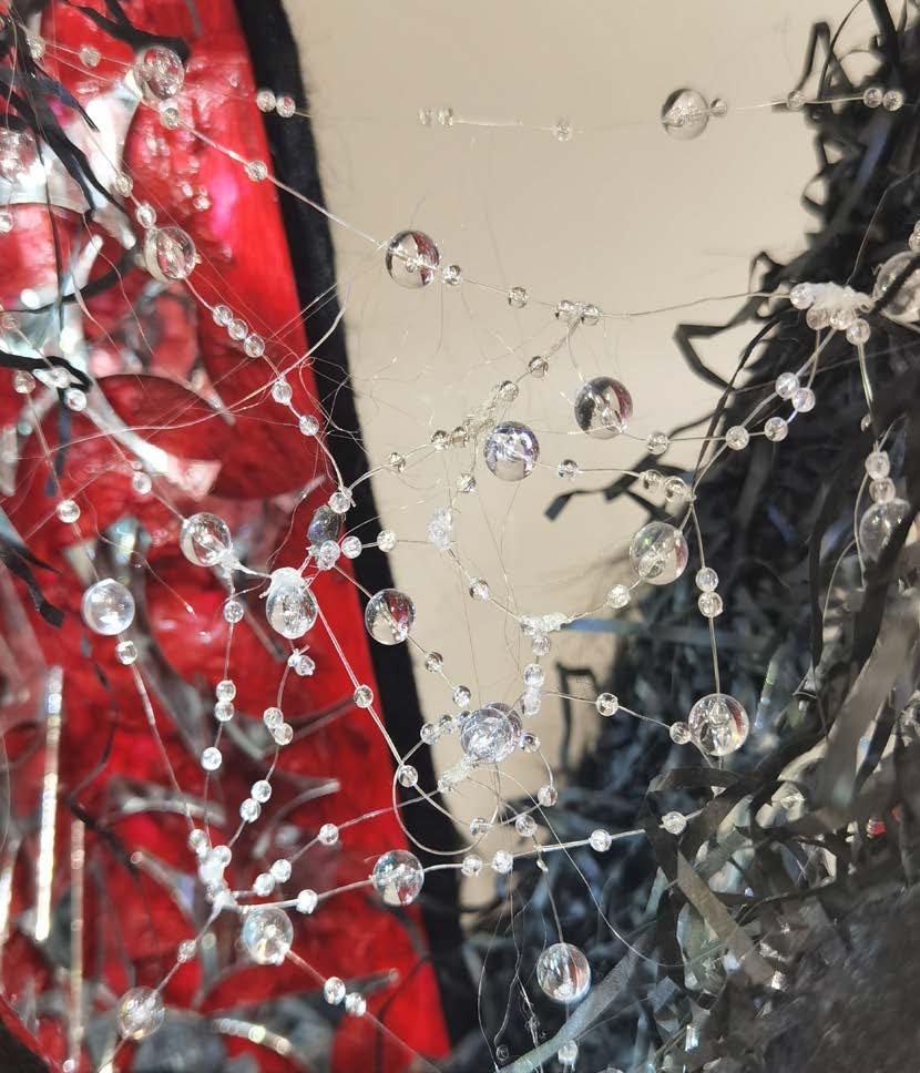 In the second space : three nets are woven and suspended from the top down. From the top of the net, the balls fall in layers down the structure of the net.