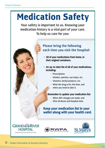 Medication Safety Your safety is important to us. Knowing your medication history is a vital part of your care. To help us care for you: