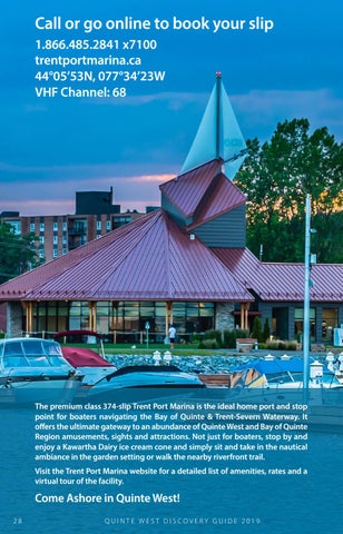 Call or go online to book your slip 1.866.485.2841 x7100 trentportmarina.ca 44°05’53N, 077°34’23W VHF Channel: 68