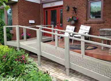 QRamp Premium has it all, this powder coated and photo luminescent light stripped ramp is the industry leader in safety, aesthetics and all around user feel. QRamp utilizes ThruFlow Premium decking for its non-slip, maintenance free surface. It’s truly modular designs allows users to add or subtract modules, tying the ramp to the client and not the home.