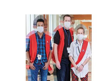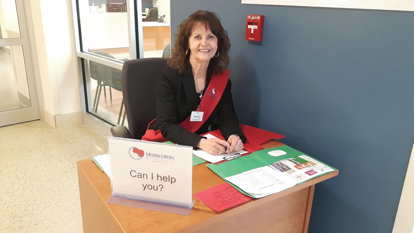 Volunteers are easily recognizable in a bright red sash, jacket or vest, along with their Misericordia name badge.