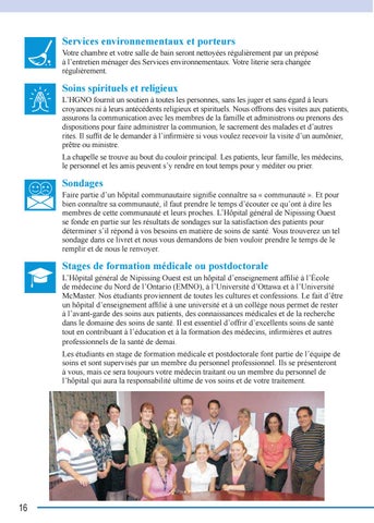 Faire partie d’un hôpital communautaire signifie connaître sa « communauté ». Et pour bien connaître sa communauté, il faut prendre le temps d’écouter ce qu’ont à dire les membres de cette communauté et leurs proches. L’Hôpital général de Nipissing Ouest se fonde en partie sur les résultats de sondages sur la satisfaction des patients pour déterminer s’il répond à vos besoins en matière de soins de santé. Vous trouverez un tel sondage dans ce livret et nous vous demandons de bien vouloir prendre le temps de le remplir et de nous le renvoyer.