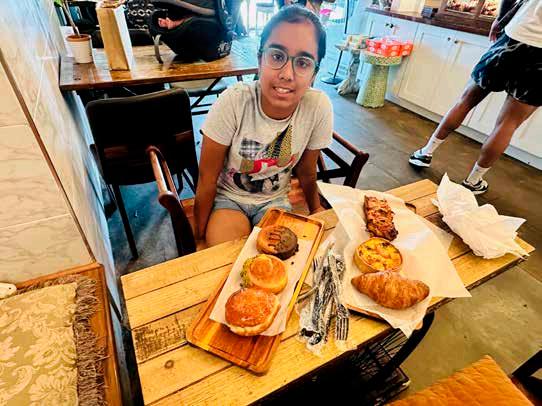THIS SUMMER I GOT TO vacation with three of my good friends and neighbors: First, Sydney and I, along with our families and our friends Sabrina and Claire, went to Colonial Williamsburg. This was fun because we got to plan what we did! We stayed in a real colonial tavern, and we even got our own room! I enjoyed walking around Colonial Williamsburg with my friends. It was cool to see how they made things in colonial times. We went to a shoemaker’s shop and they showed us how colonial shoes were made! The best parts were the ghost tour we took at night and getting to eat in a fancy restaurant where we had real colonial food.