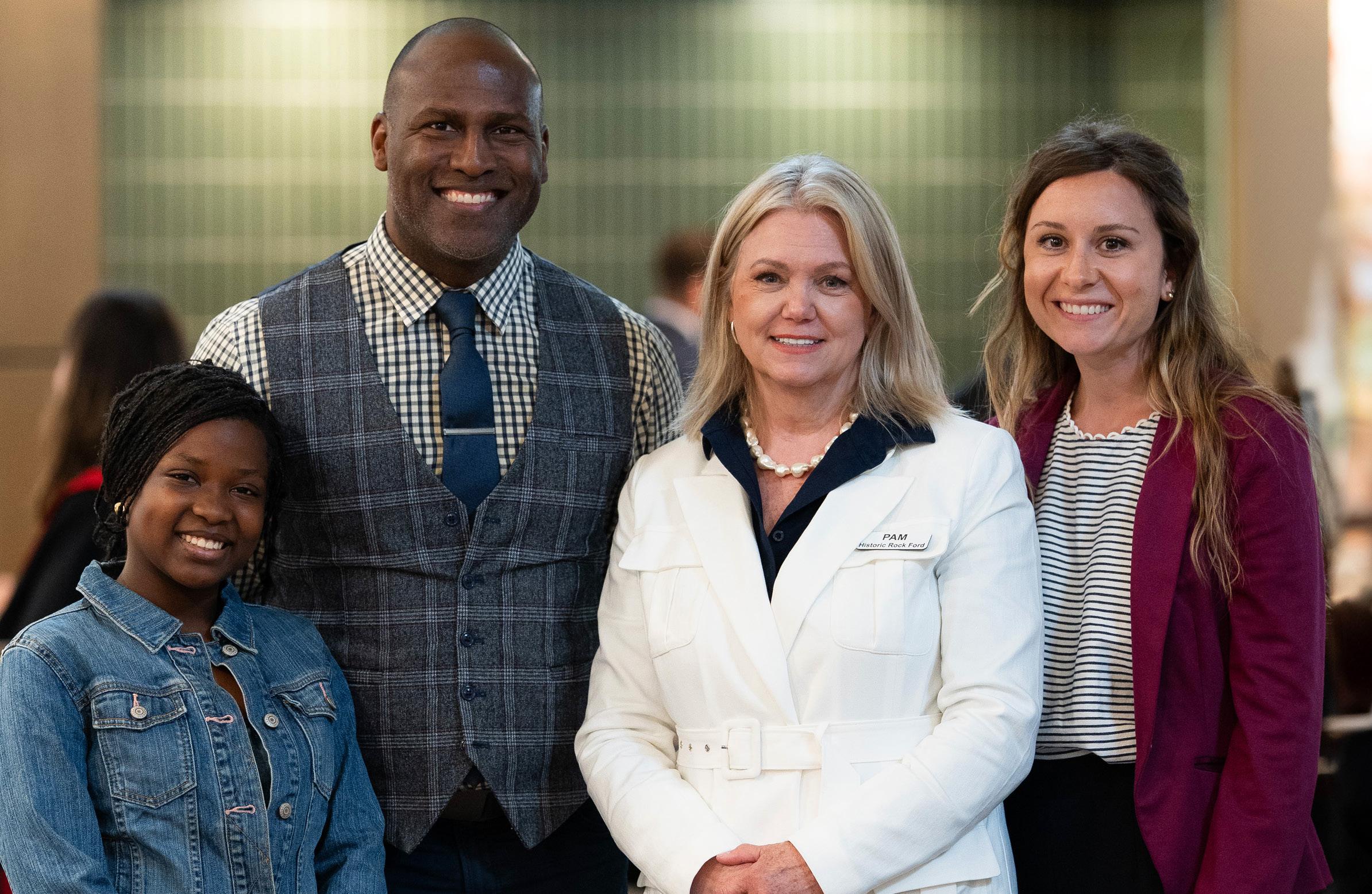 A luncheon celebration at Southern Market followed the placement of three Witness Stones in Penn Square. (L-R) McCaskey student Izzy Alagbe; Chris Ballentine, Community Relations Manager, Willow Valley Communities; Historic Rock Ford volunteer Pamela Stoner; and Lauren A. Renehan, Executive Director, Willow Valley Communities Charitable Foundation.