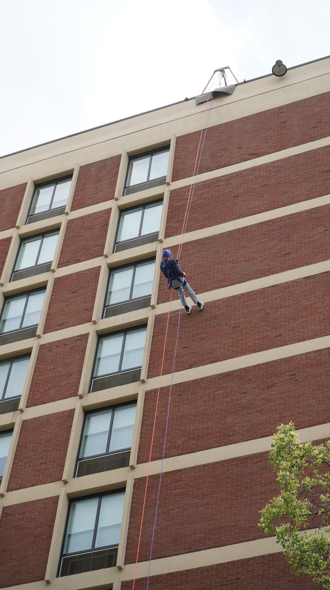 “The drop was more physically taxing than I expected,” Dick admitted. “I got to see and talk to people who were blind and rappelling. What I learned is that with some support, people with vision challenges can accomplish much! They were doing a great job rappelling down the side of the 10-story Holiday Inn.”