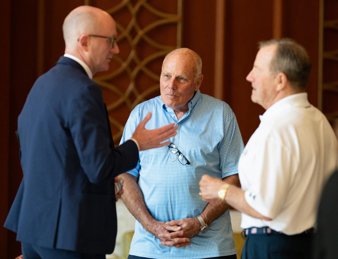 The event was made even more meaningful when Resident Gail Miller introduced her father, Robert Adams, who is 104. A proud WWII veteran who served in the 8th Air Force in England under Gen. Jimmy Doolittle, Mr. Adams received warm recognition from the audience and later posed for a memorable photo alongside Gail, his other daughter, Regina Chandler, and Mr. Watson, marking a highlight of the day.