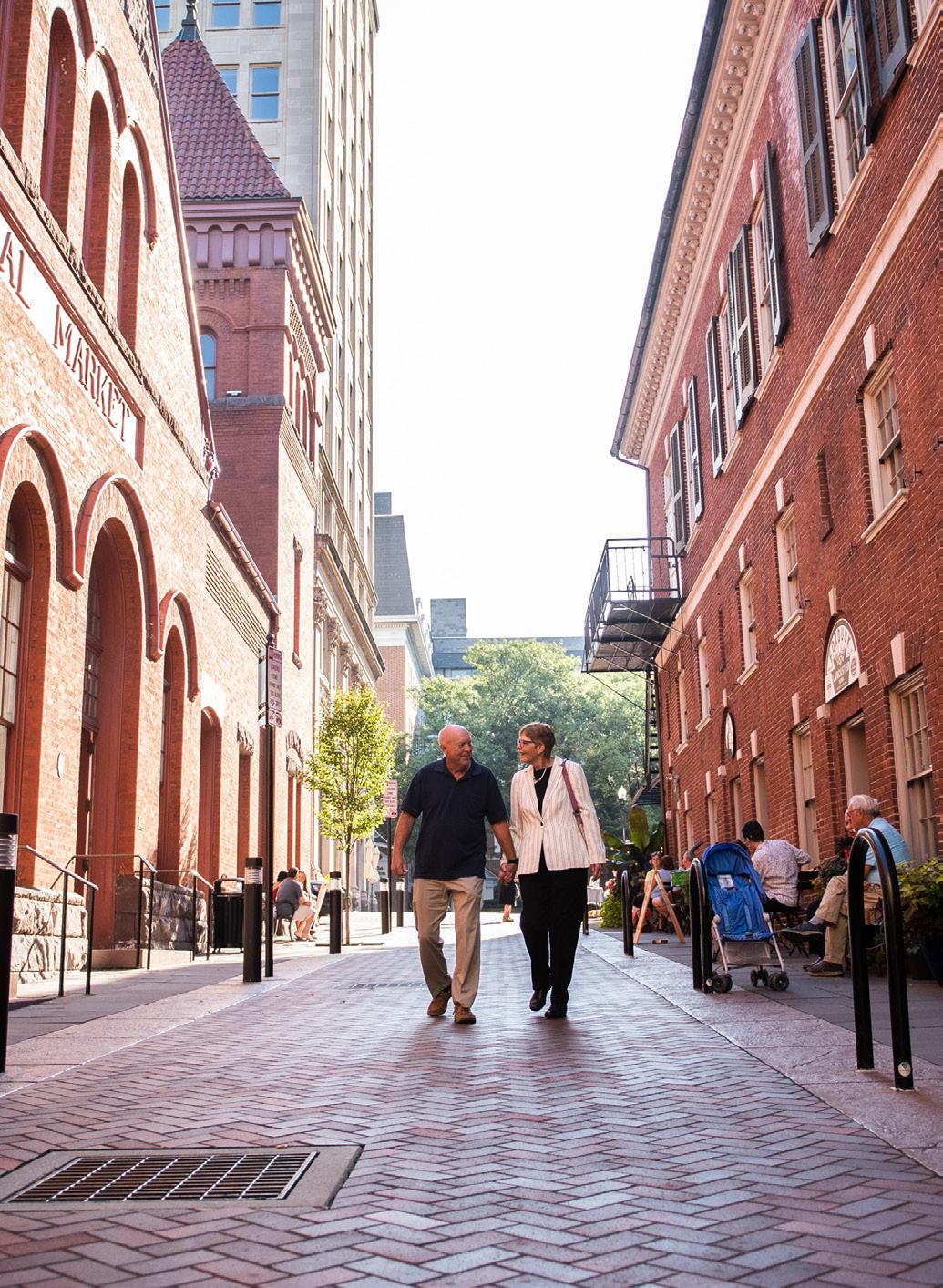 Artist Rendering | Mosaic Ground Floor Lobby Willow Valley Communities Residents enjoy walking in Lancaster City.
