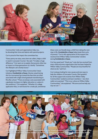 Communities’ clubs and organizations help, too, by donating their time and talents with special projects. Cori is proud of the impact the committee has. “Every penny we raise, every item we collect, helps a child in need in Lancaster County,” she said. “It makes a huge difference.” Cori went on to explain that poverty often has an impact on three generations of a family. “Sometimes this lifestyle is all a family knows.” Cori highlighted Willow Valley Communities’ latest initiative, Cornhole for a Cause. Monies raised during this fun tournament go toward the fees that are often associated with a high school graduate transitioning to life after school. “There are always costs associated with a graduate moving on to higher education or a place in the workforce,” Cori explained. “Whether it’s college application fees, or work boots for a trade job, sometimes