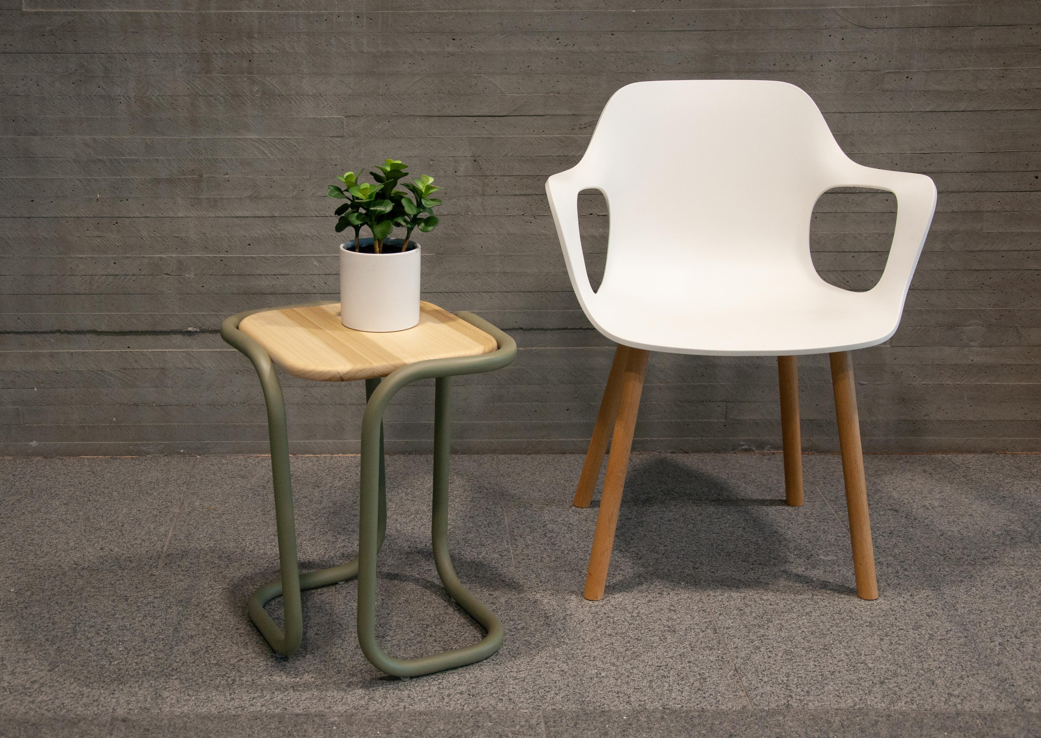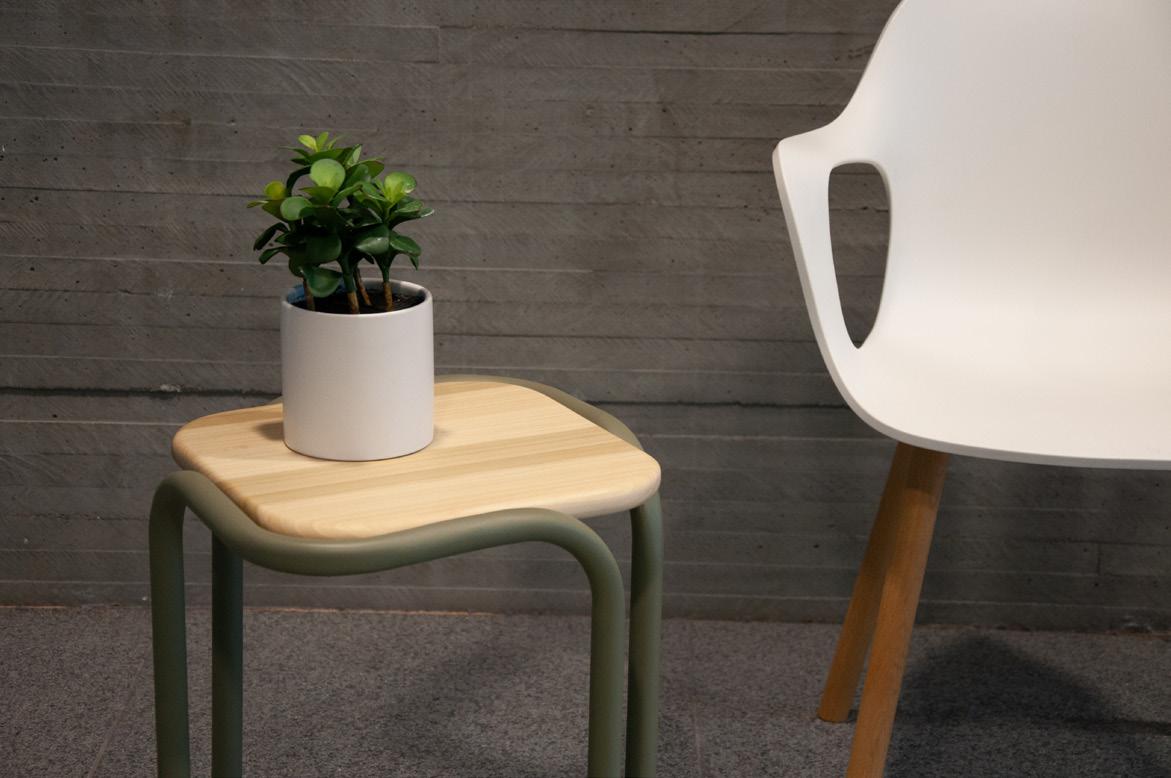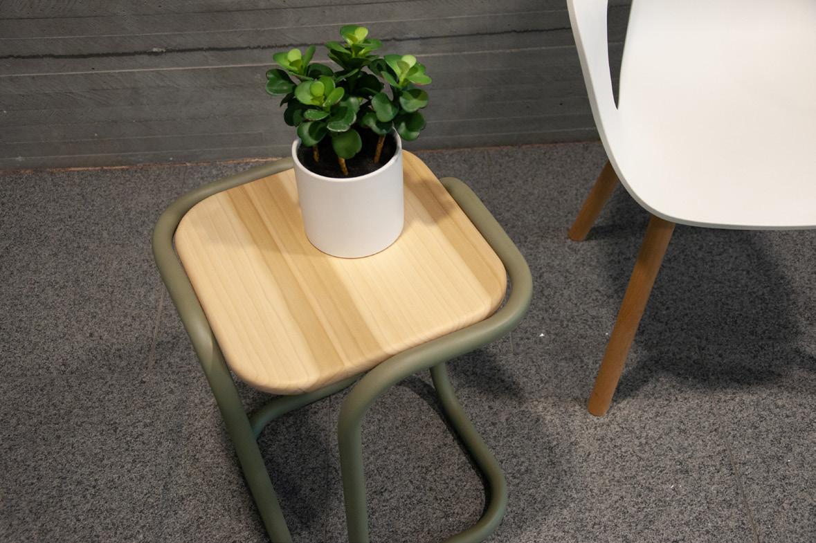 Called Embrace, the concept reflects the idea of the metal legs wrapping around the table top. This relationship creates a form in which the legs seems to reach upwards and lift the wood in a soft handhold like embrace. Metal tube was bent in three axis and welded together to create continuous wrapping legs. The legs wrap two corners, leaving the other two exposed allowing for both wood movement and handholds.