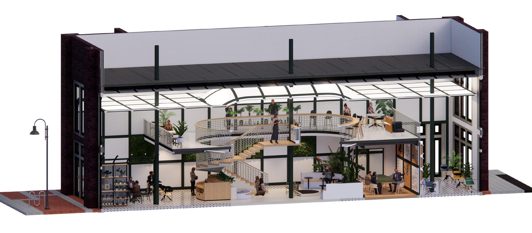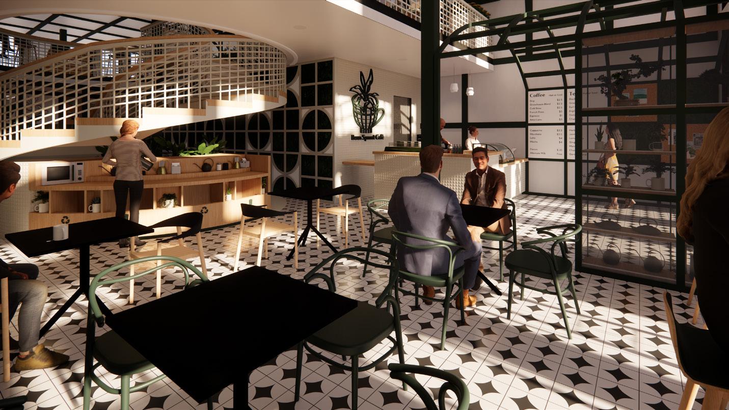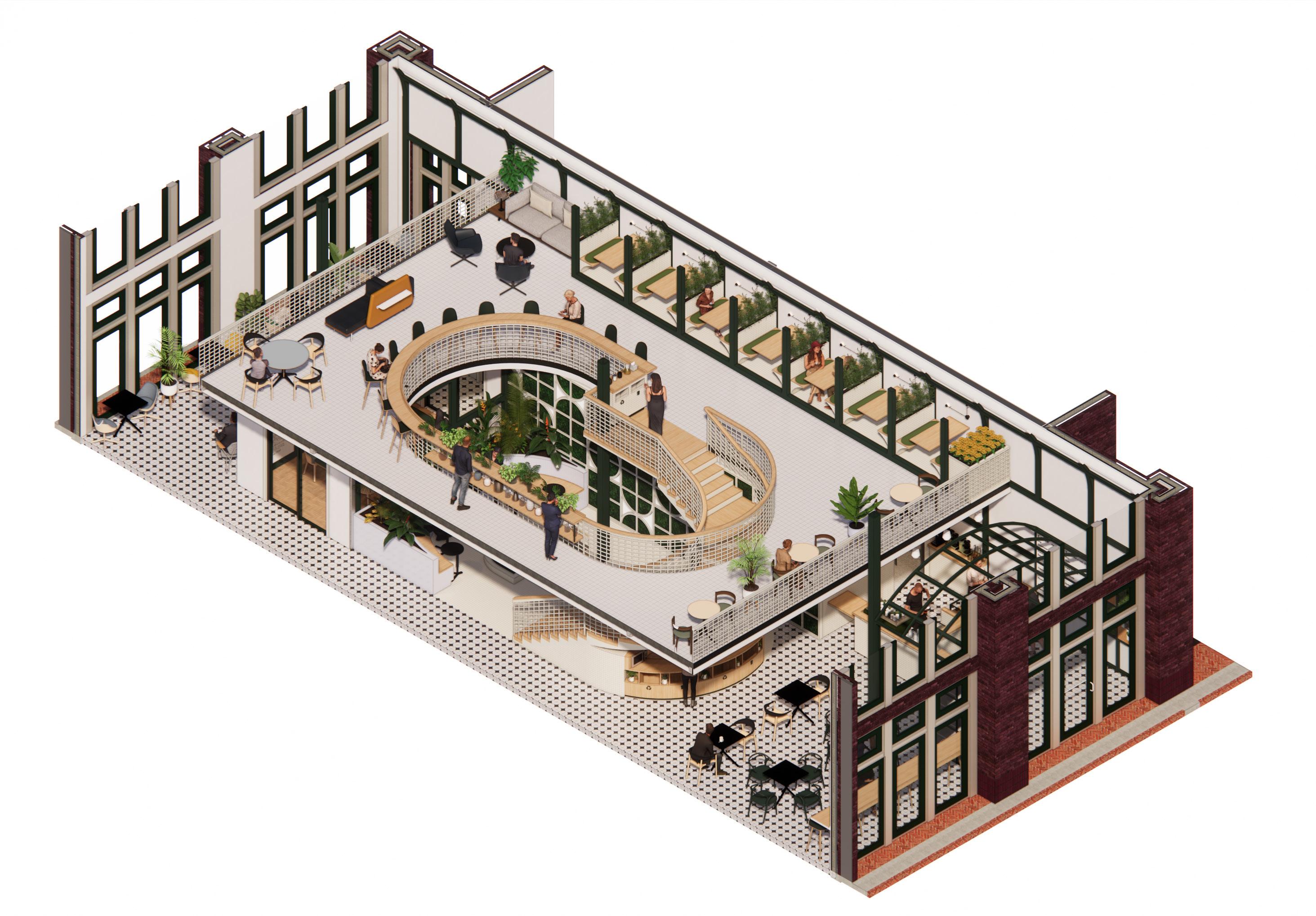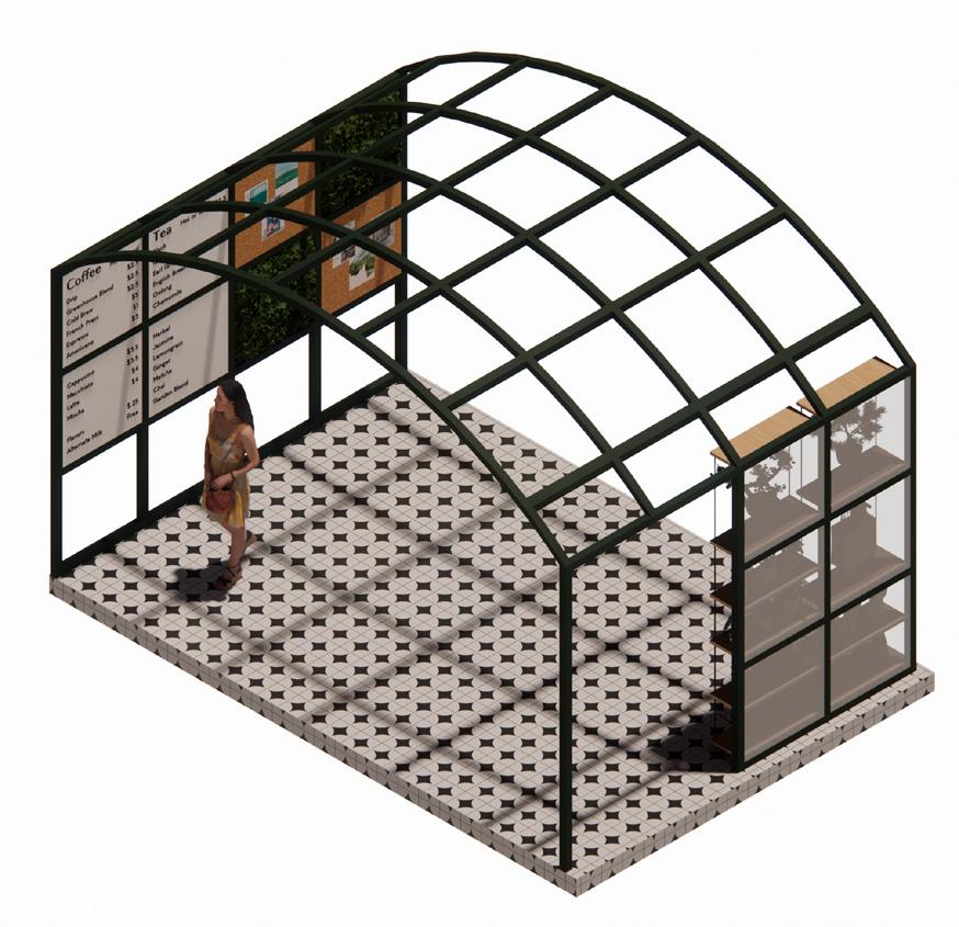 Inspired by greenhouses of the Victorian era and later, this coffee shop design seeks to create an experience of escape from daily life utilizing green space and connection to nature as a means of rejuvenating visitors. Restorative environments was a central focus throughout the design process as a way to use nature to create a therapeutic space.