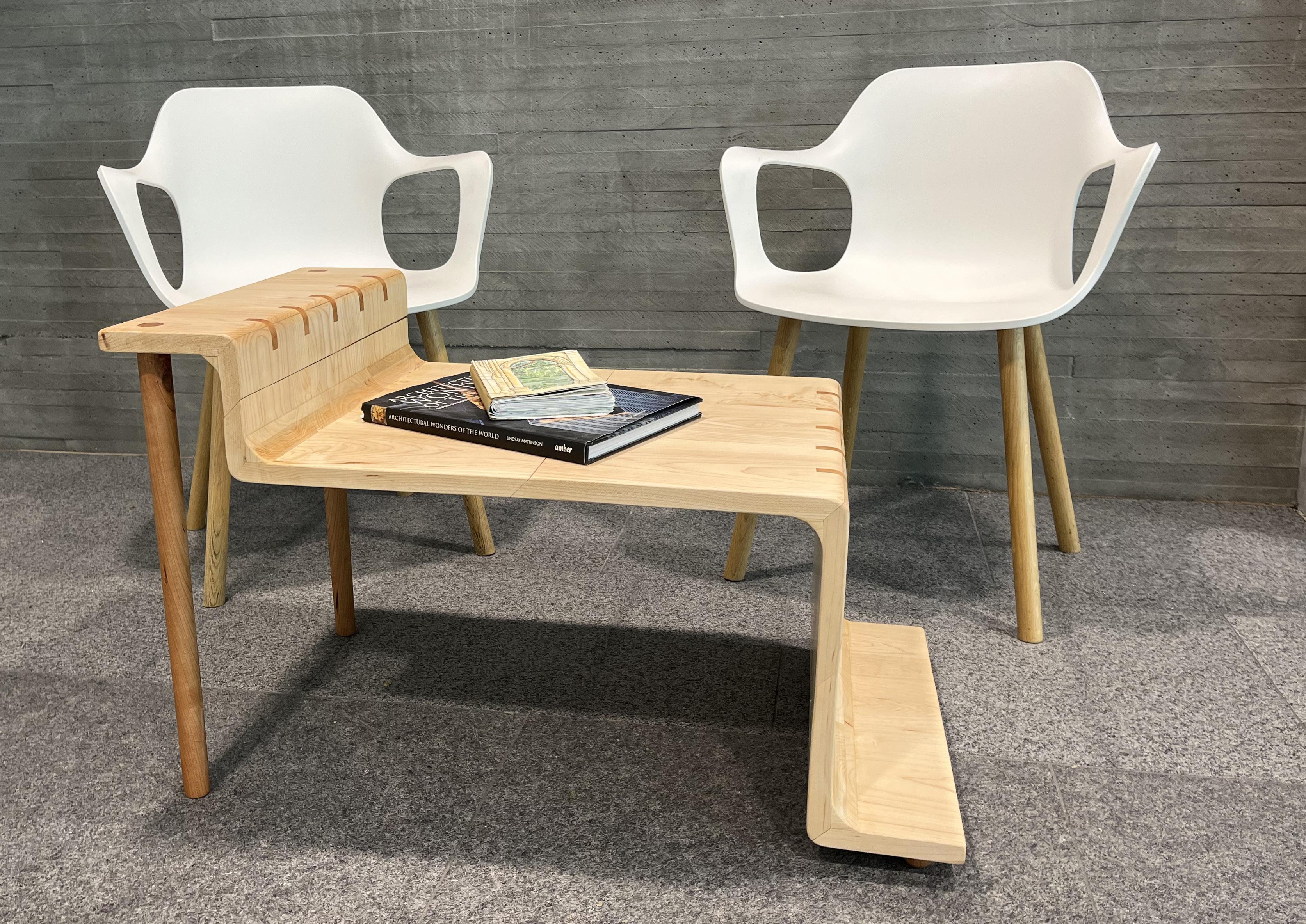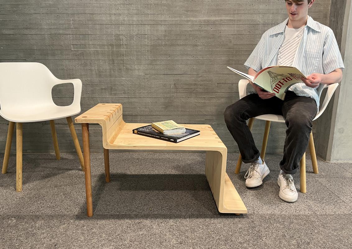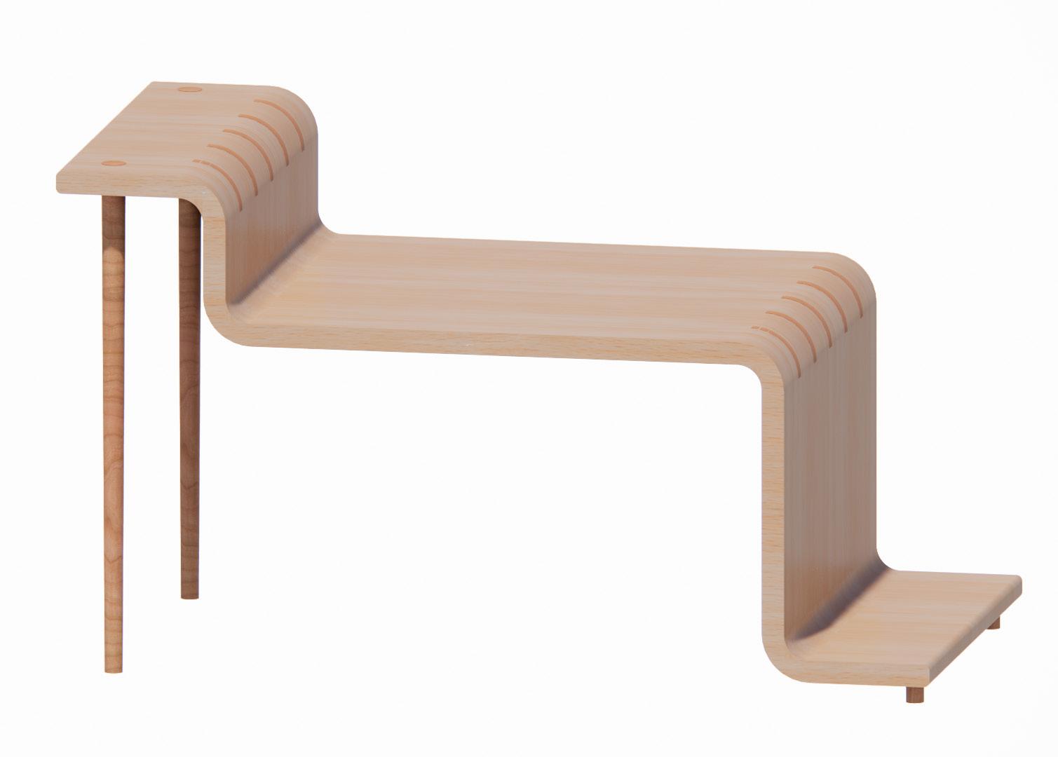 This coffee table design focuses on reacting to the principles of Scandinavian Modernism and adapting them into a unique table that is both functional and sculptural. Inspired by the natural harmony and balance seen in Scandinavian design, the table seeks to mimic the flow of a waterfall by creating a continuous curved form that flows to the ground.
