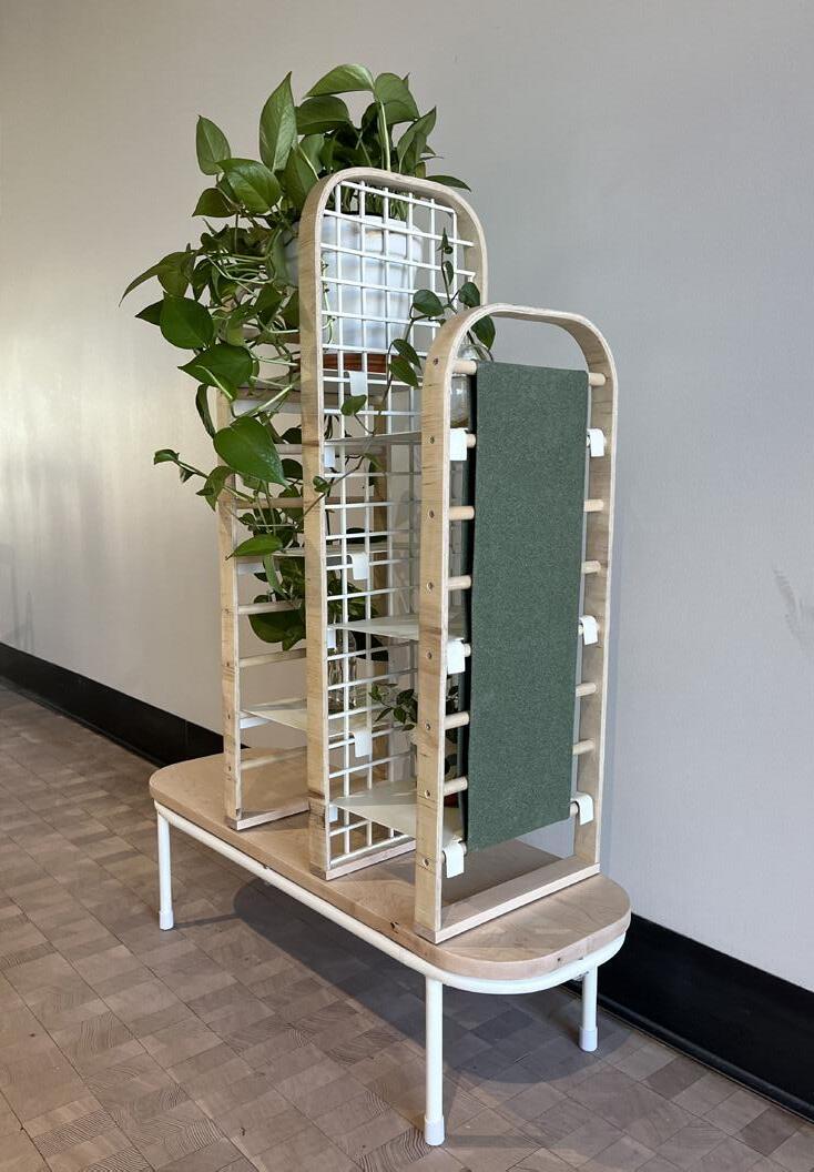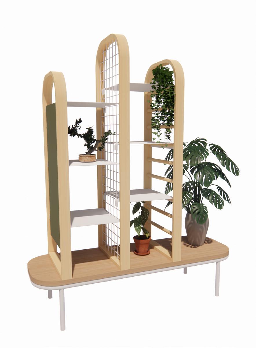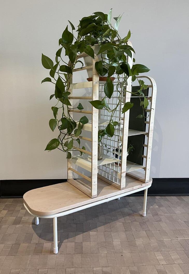The assignment for this project was to create a collection of furniture pieces that serve task, display, and storage functions for a hobby of choice. This design seeks to create a collection for house plant care. Focusing on mitigating mess and celebrating the beauty of plants within a space, the collection makes plant care, storage, and display as easy as possible.