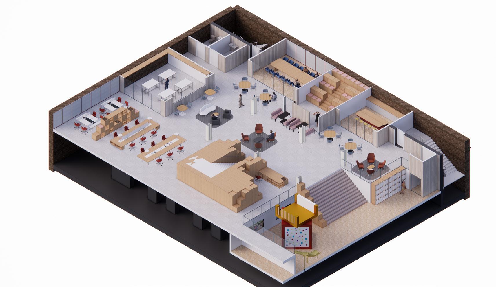 This project proposes a new regional headquarters for Danish playground manufacturer, Kompan. Located in St. Louis, the proposal looks to adapt a three story warehouse space into a multilevel collaborative office. The concept of this design, called building blocks, seeks to celebrate play as a central tenet of human life, a key component of Kompan’s mission.