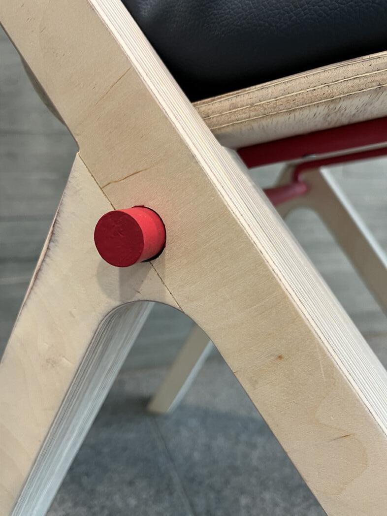 The stability of the chair is based on the layering of 1/2” plywood to form the legs. Five layers were joined with a mortise and tenon connection in the center, creating an angled “v” shape.